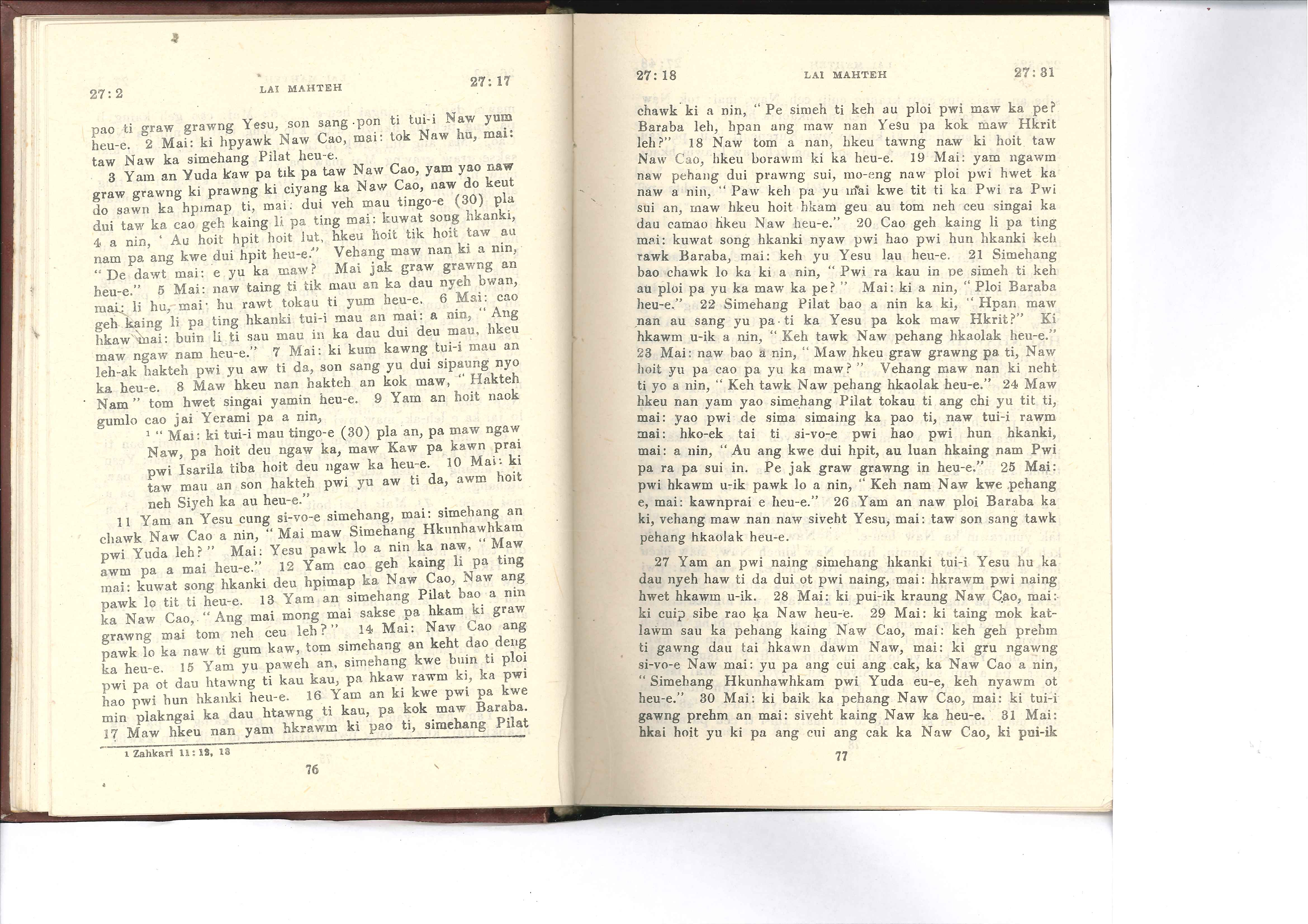 1985年佤文新約全書 馬太福音 27 章 2 節到 27 章 31 節