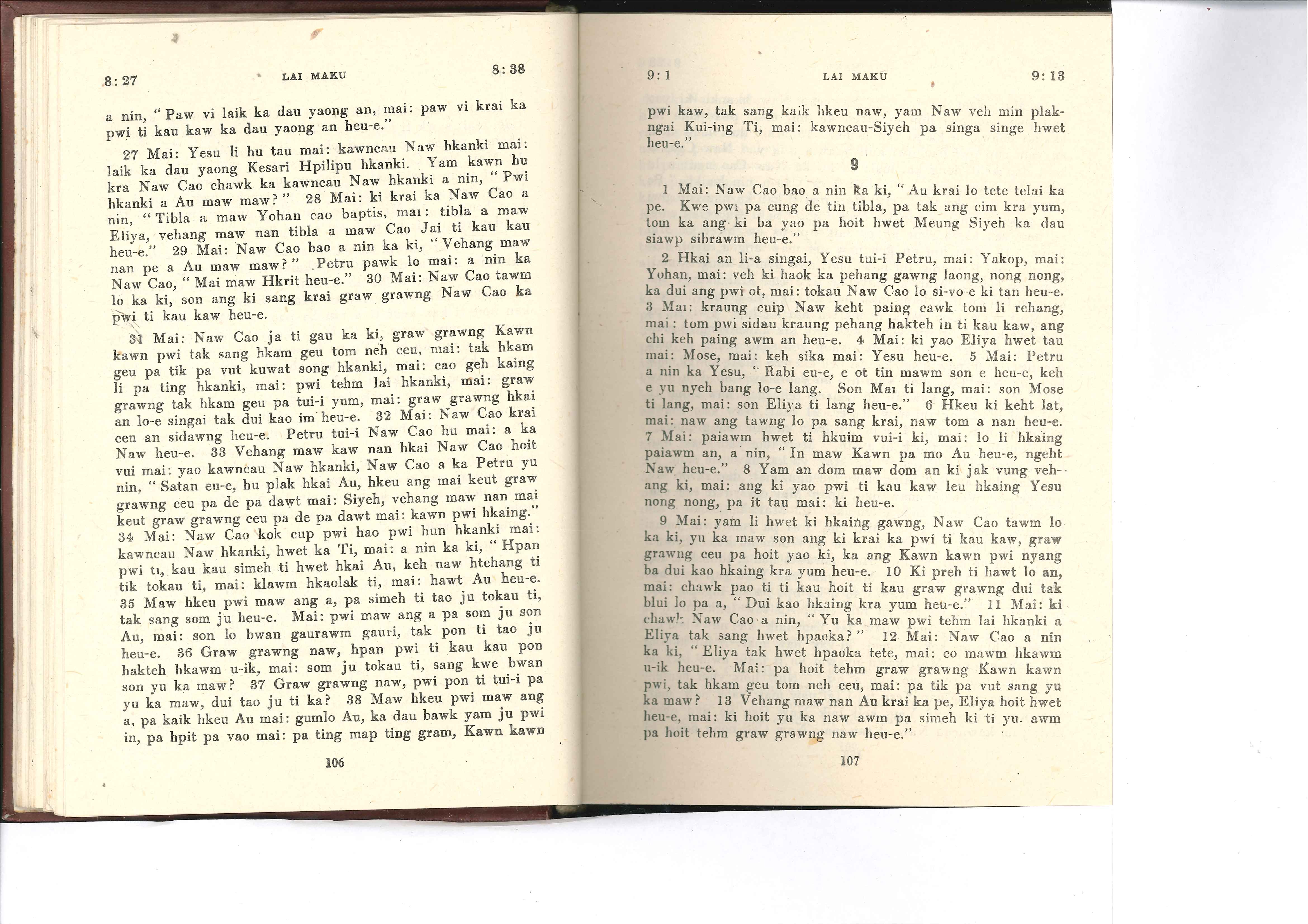 1985年佤文新約全書 馬可福音 8 章 27 節到 9 章 13 節