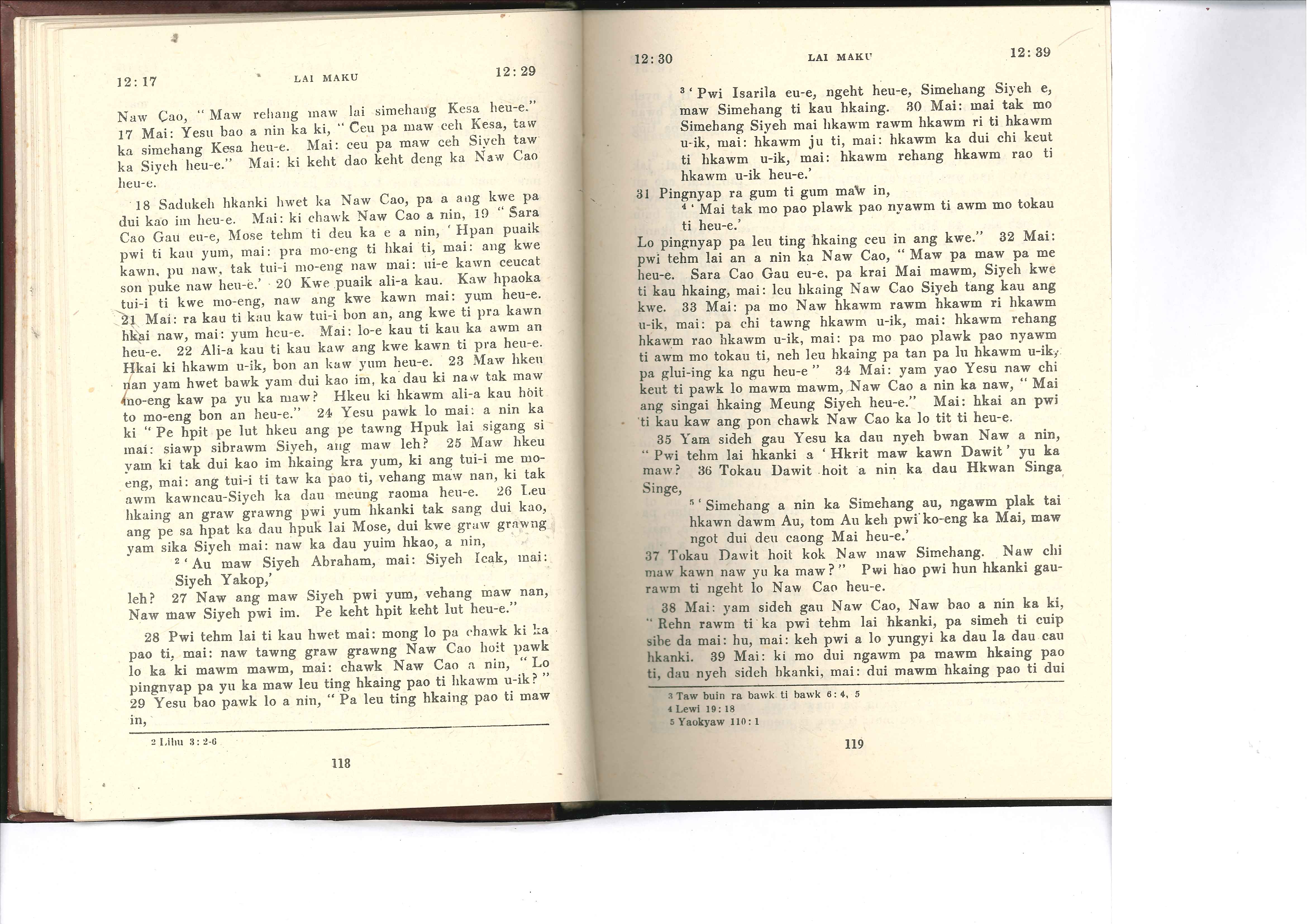 1985年佤文新約全書 馬可福音 12 章 17 節到 12 章 39 節