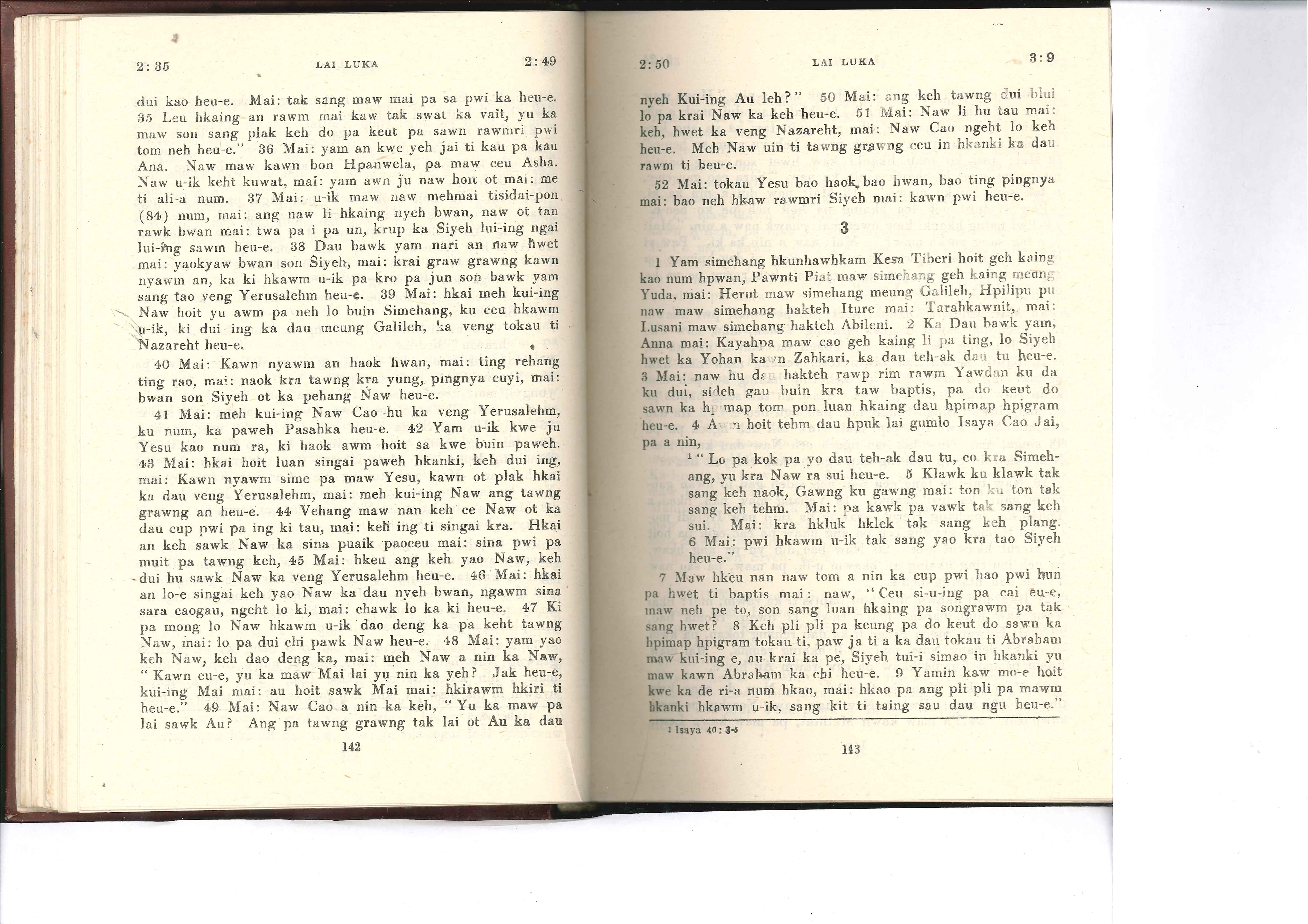 1985年佤文新約全書 路加福音 2 章 35 節到 3 章 9 節