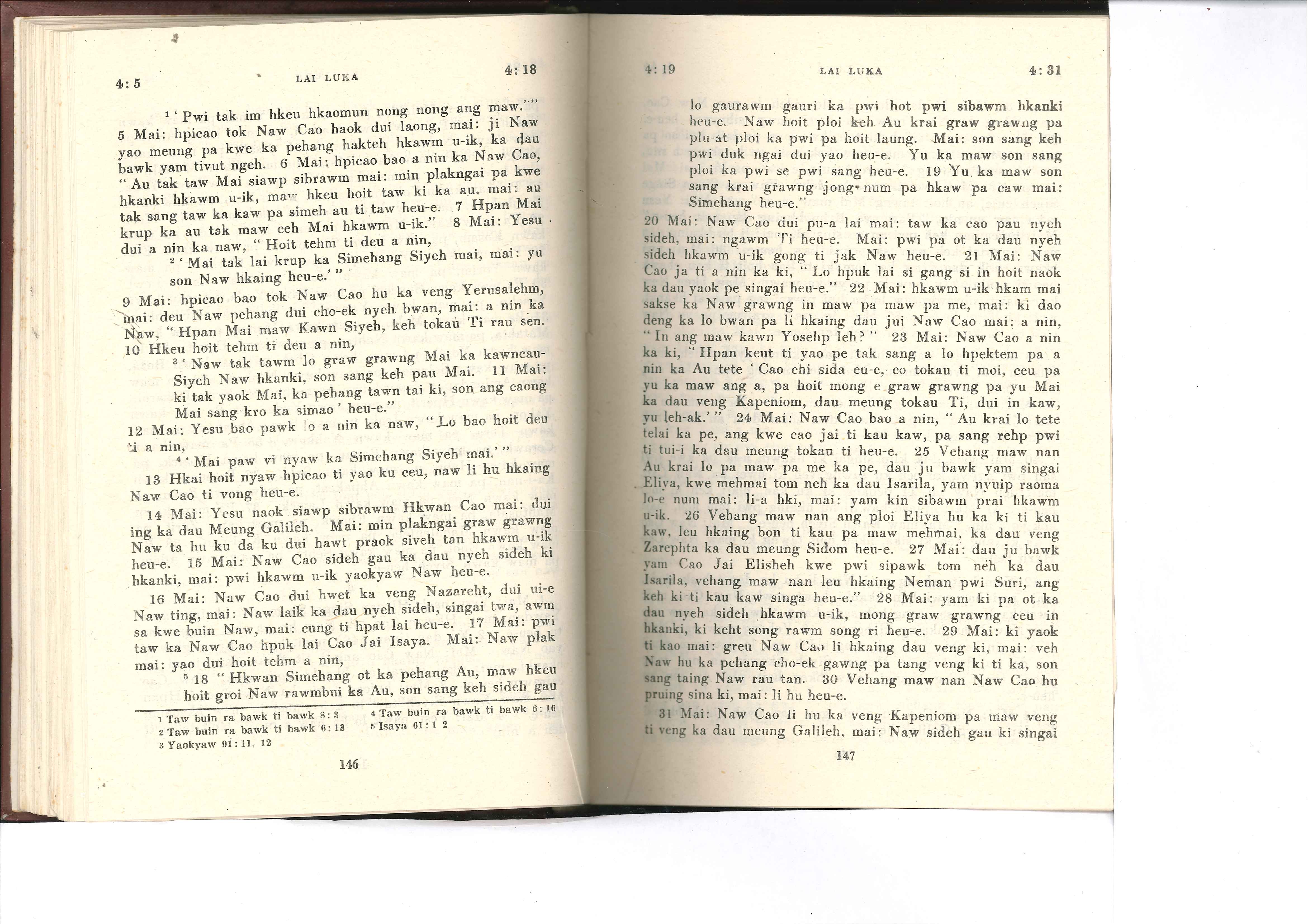 1985年佤文新約全書 路加福音 4 章 5 節到 4 章 31 節