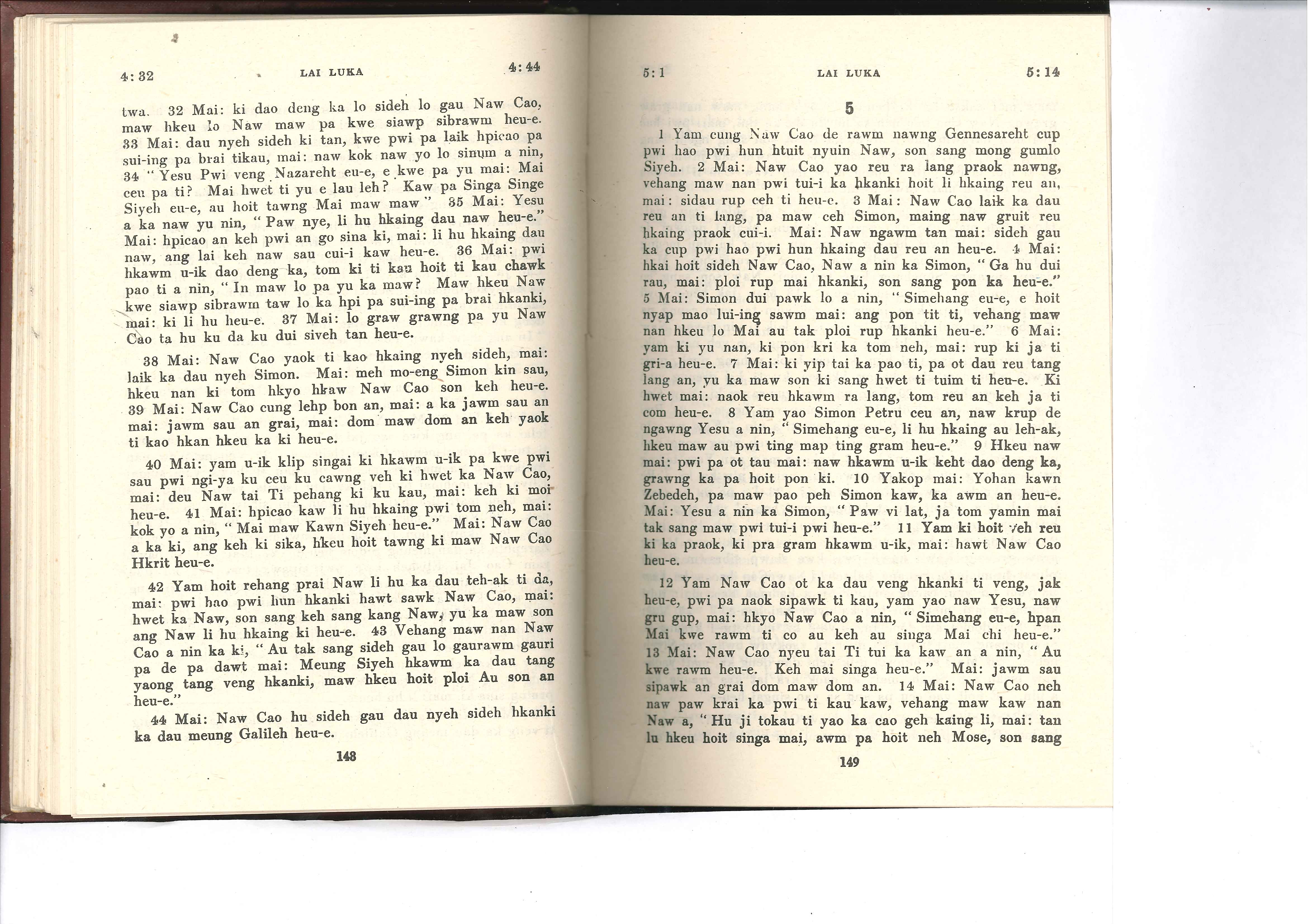 1985年佤文新約全書 路加福音 4 章 32 節到 5 章 14 節