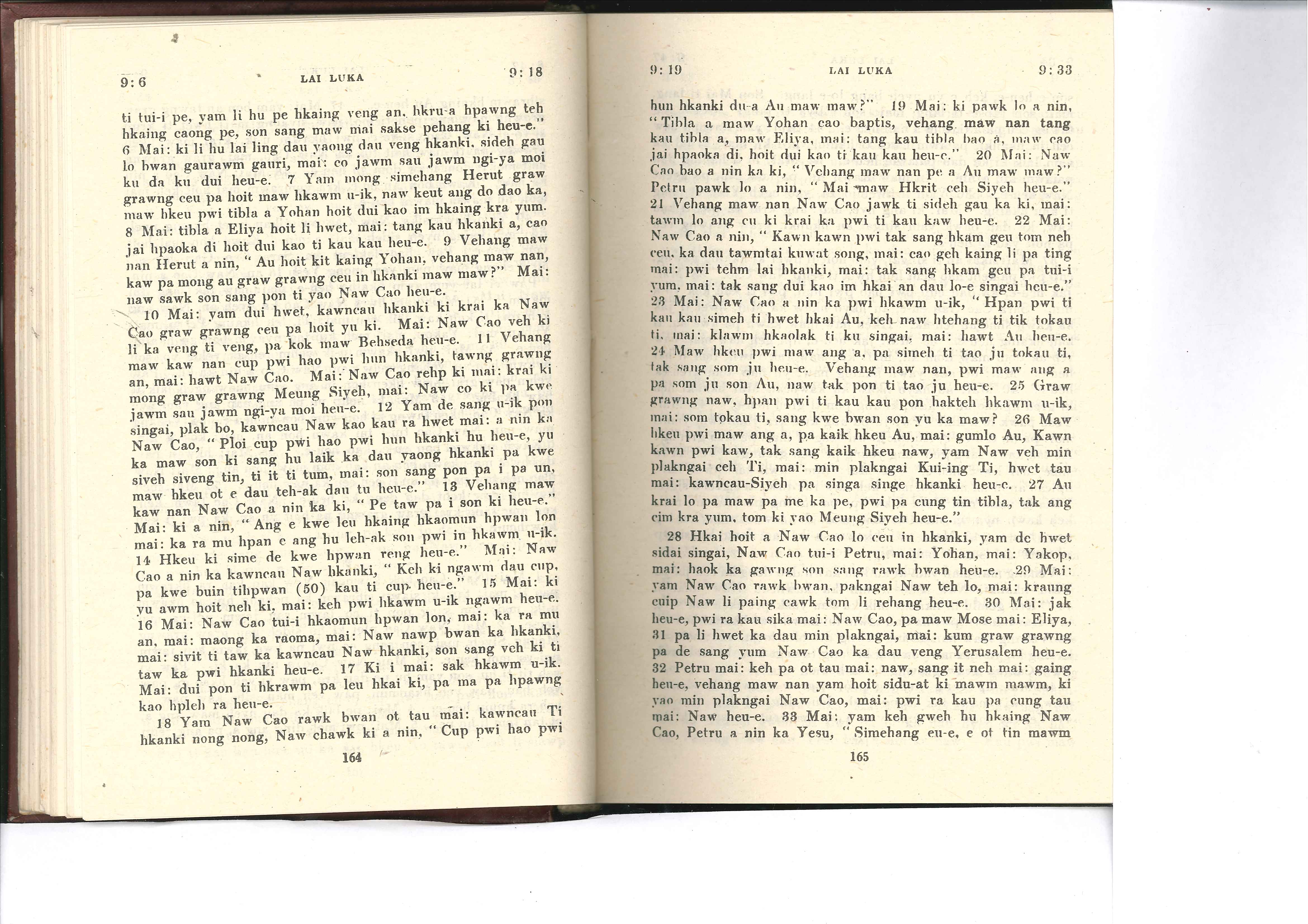 1985年佤文新約全書 路加福音 9 章 6 節到 9 章 33 節