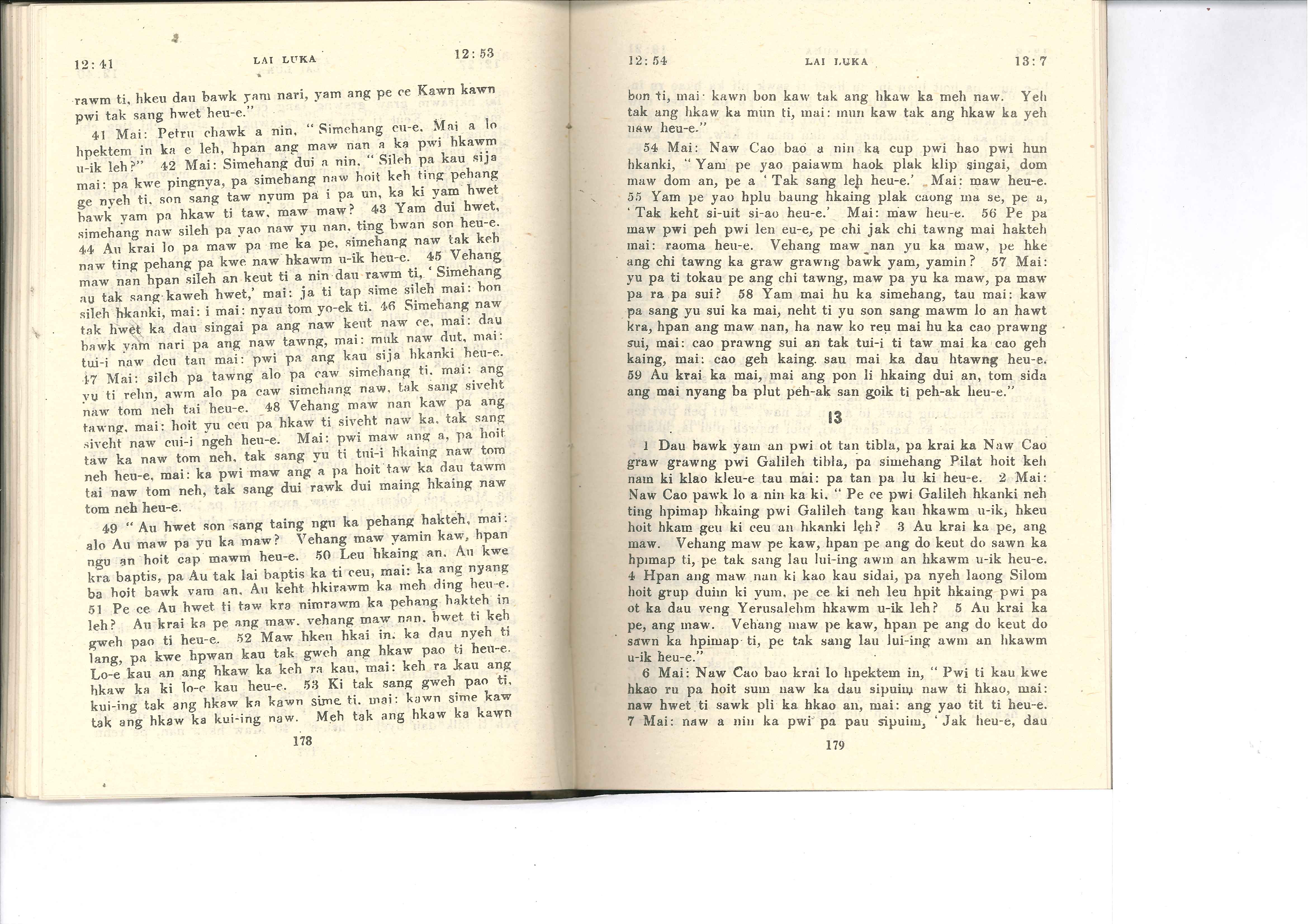 1985年佤文新約全書 路加福音 12 章 41 節到 13 章 7 節