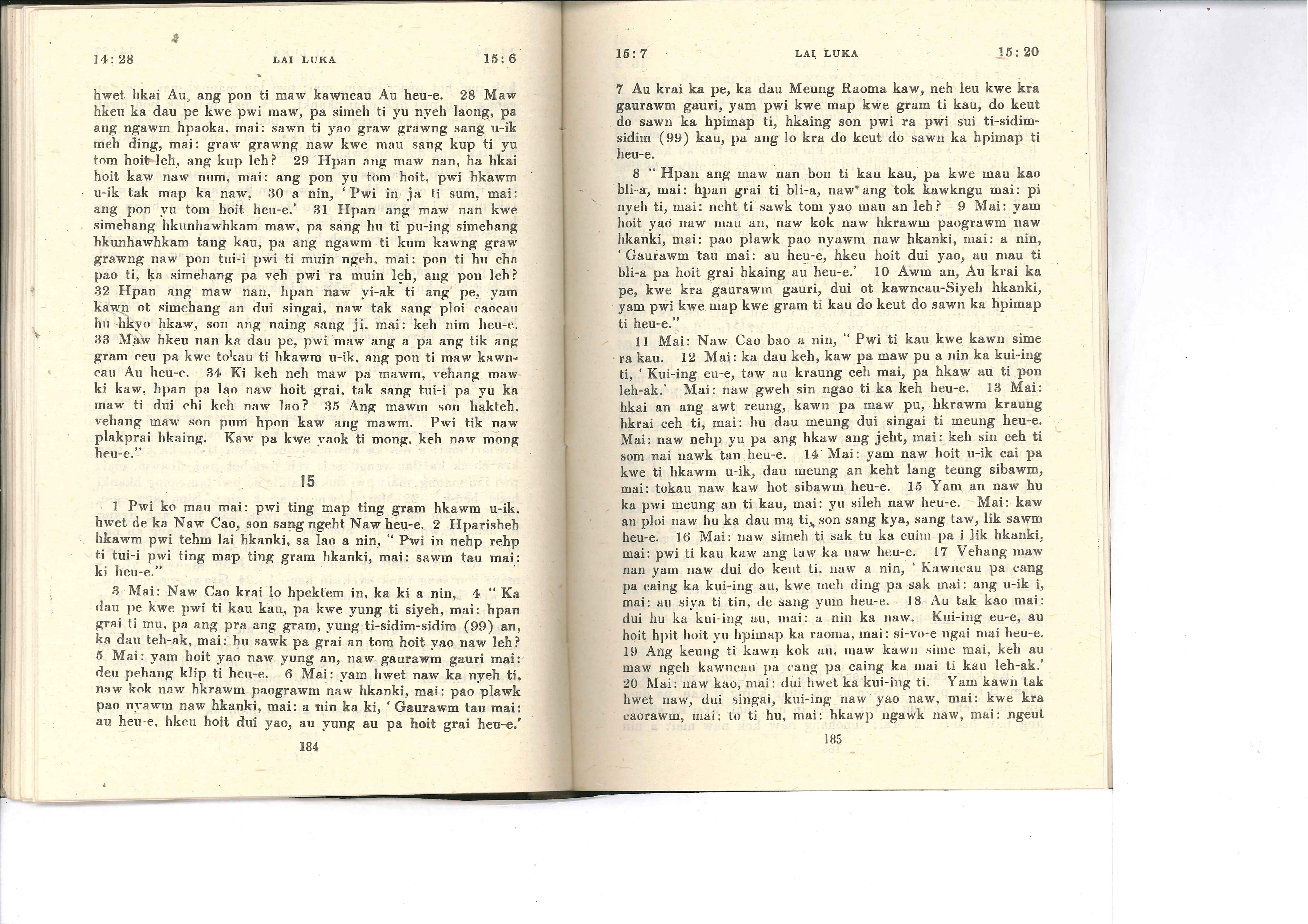 1985年佤文新約全書 路加福音 14 章 28 節到 15 章 20 節