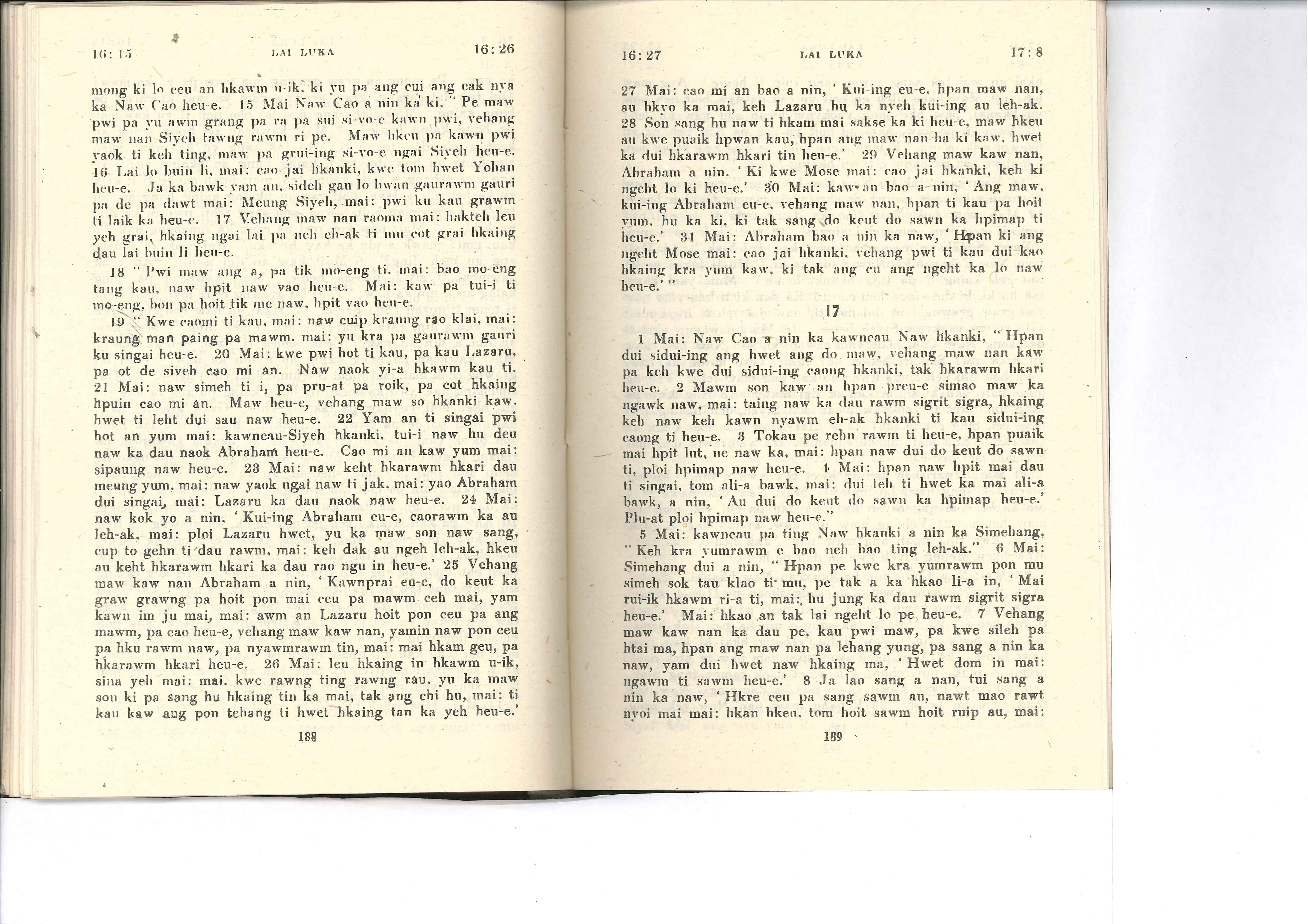 1985年佤文新約全書 路加福音 16 章 15 節到 17 章 8 節