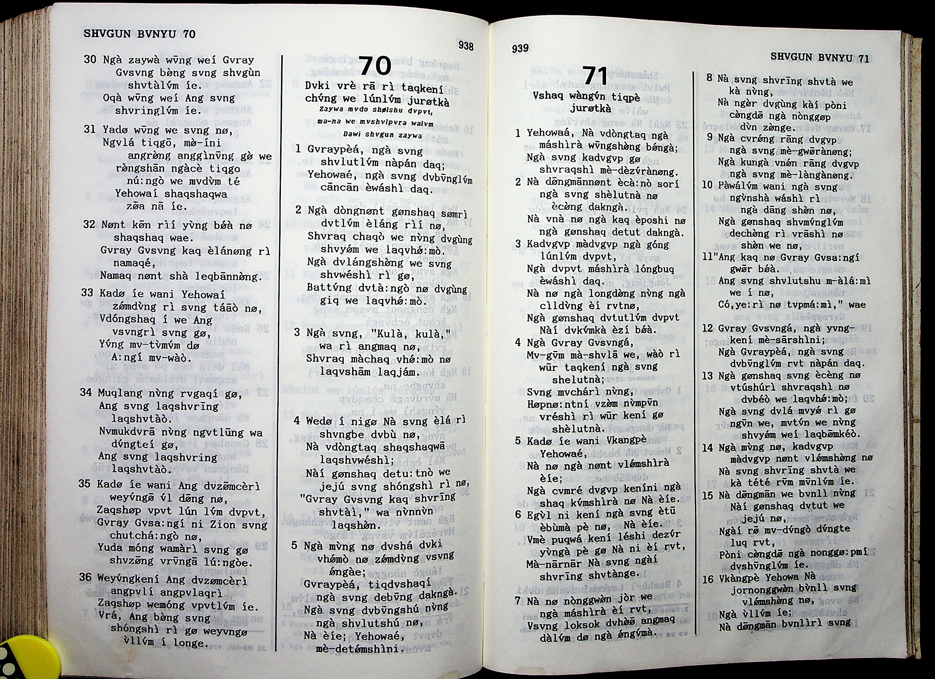1950年獨龍族新約與詩篇 詩篇 69 章 30 節到 71 章 16 節