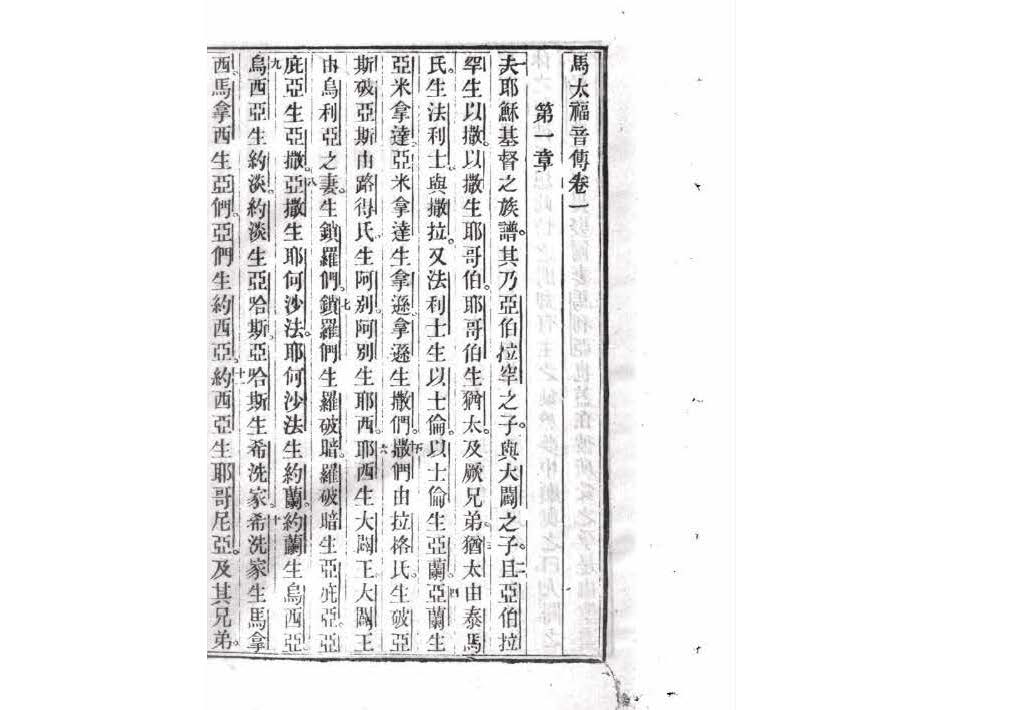 1867年胡德邁《新約傳彙統》 馬太福音 1 章 1 節到 1 章 11 節