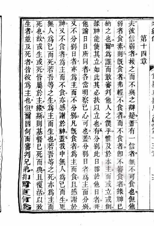 1867年胡德邁《新約傳彙統》 羅馬書 14 章 1 節到 14 章 10 節
