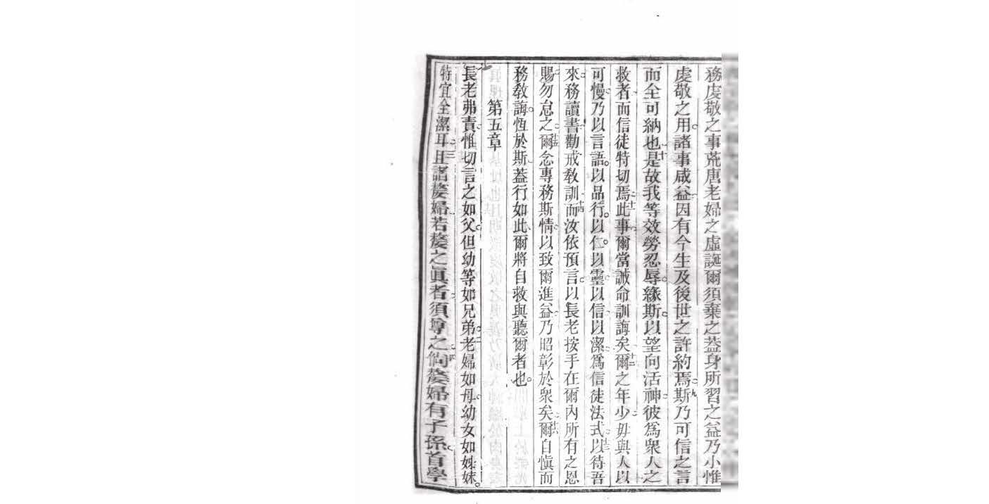 1867年胡德邁《新約傳彙統》 提摩太前書 4 章 8 節到 5 章 4 節