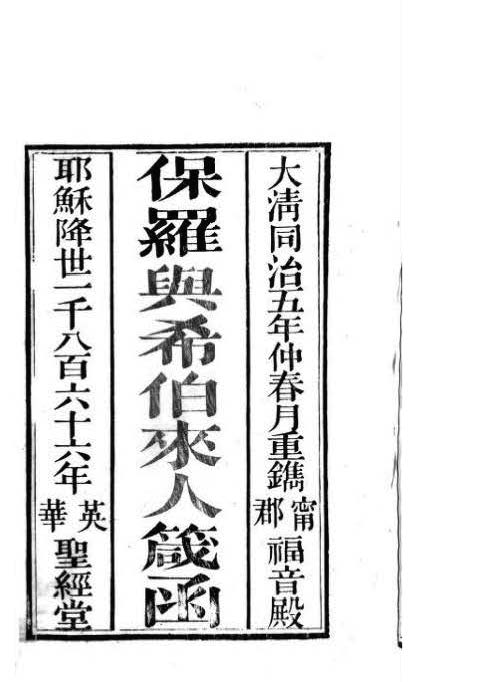 1867年胡德邁《新約傳彙統》 希伯來書 0 章 到 0 章