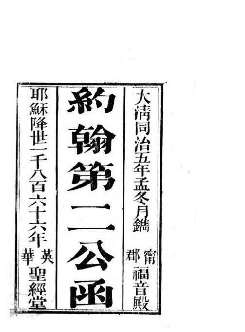 1867年胡德邁《新約傳彙統》 約翰二書 0 章 到 0 章