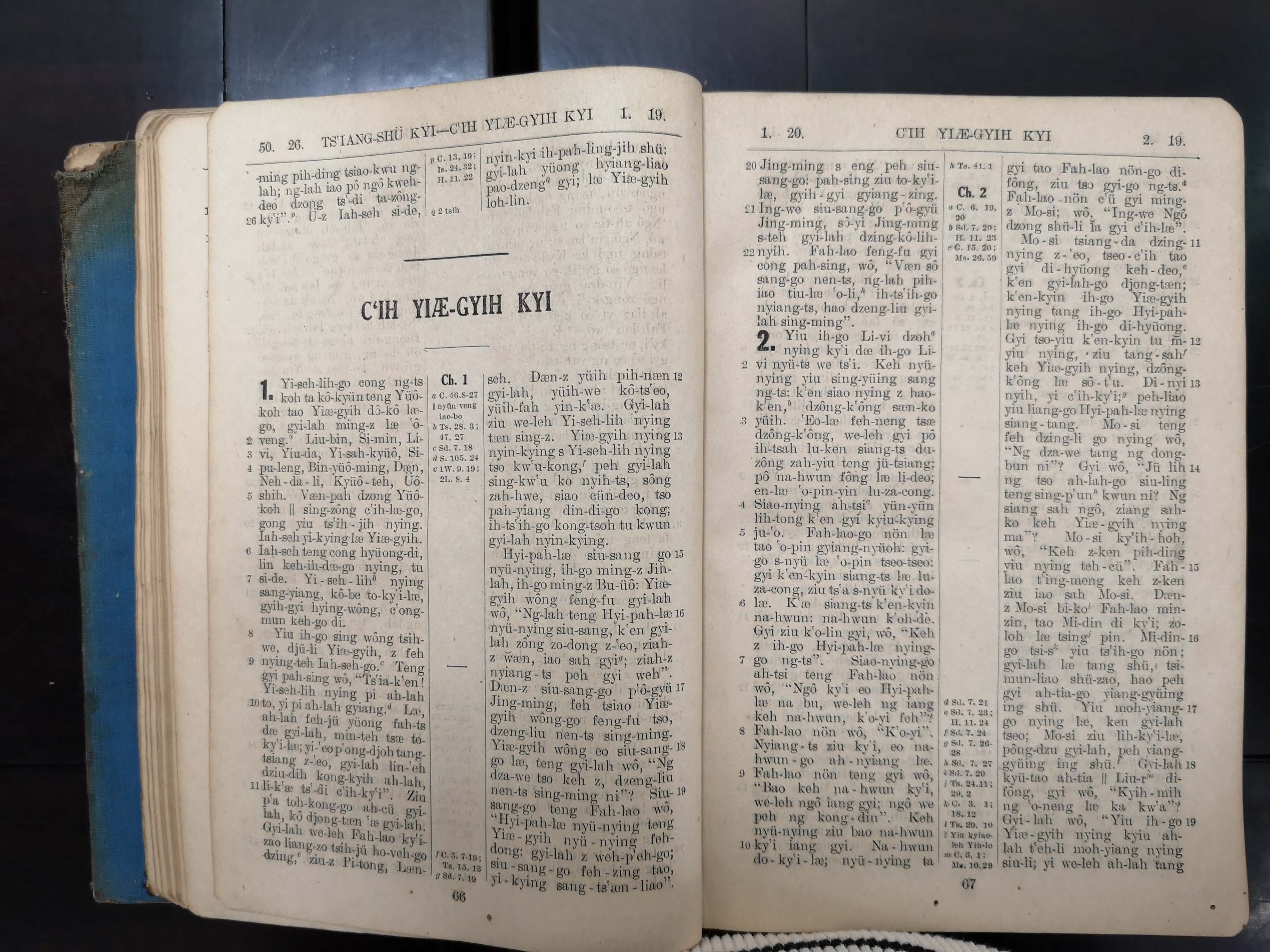 1923年寧波話羅馬字舊約全書 出埃及記 1 章 1 節到 2 章 19 節