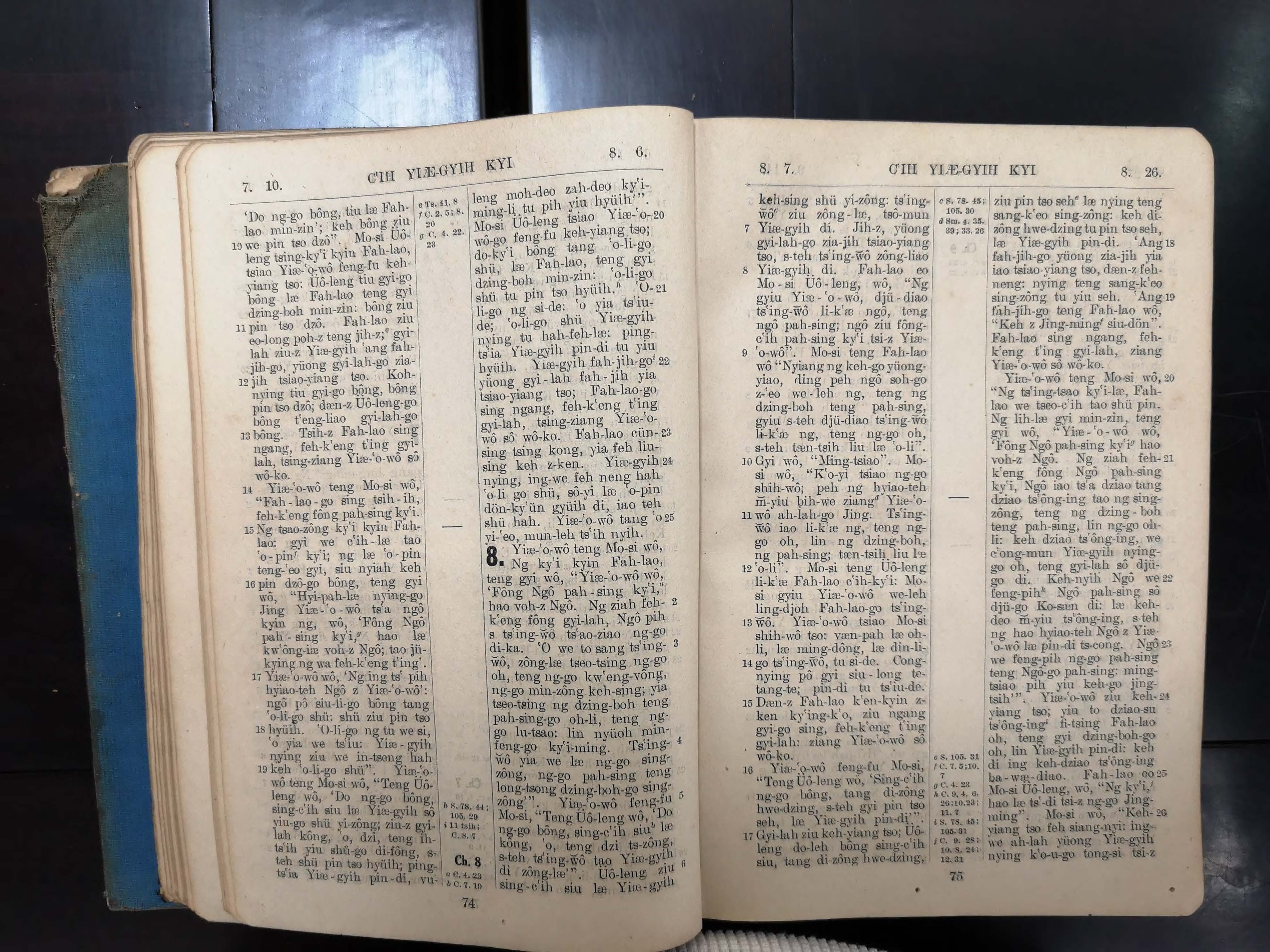 1923年寧波話羅馬字舊約全書 出埃及記 7 章 10 節到 8 章 26 節