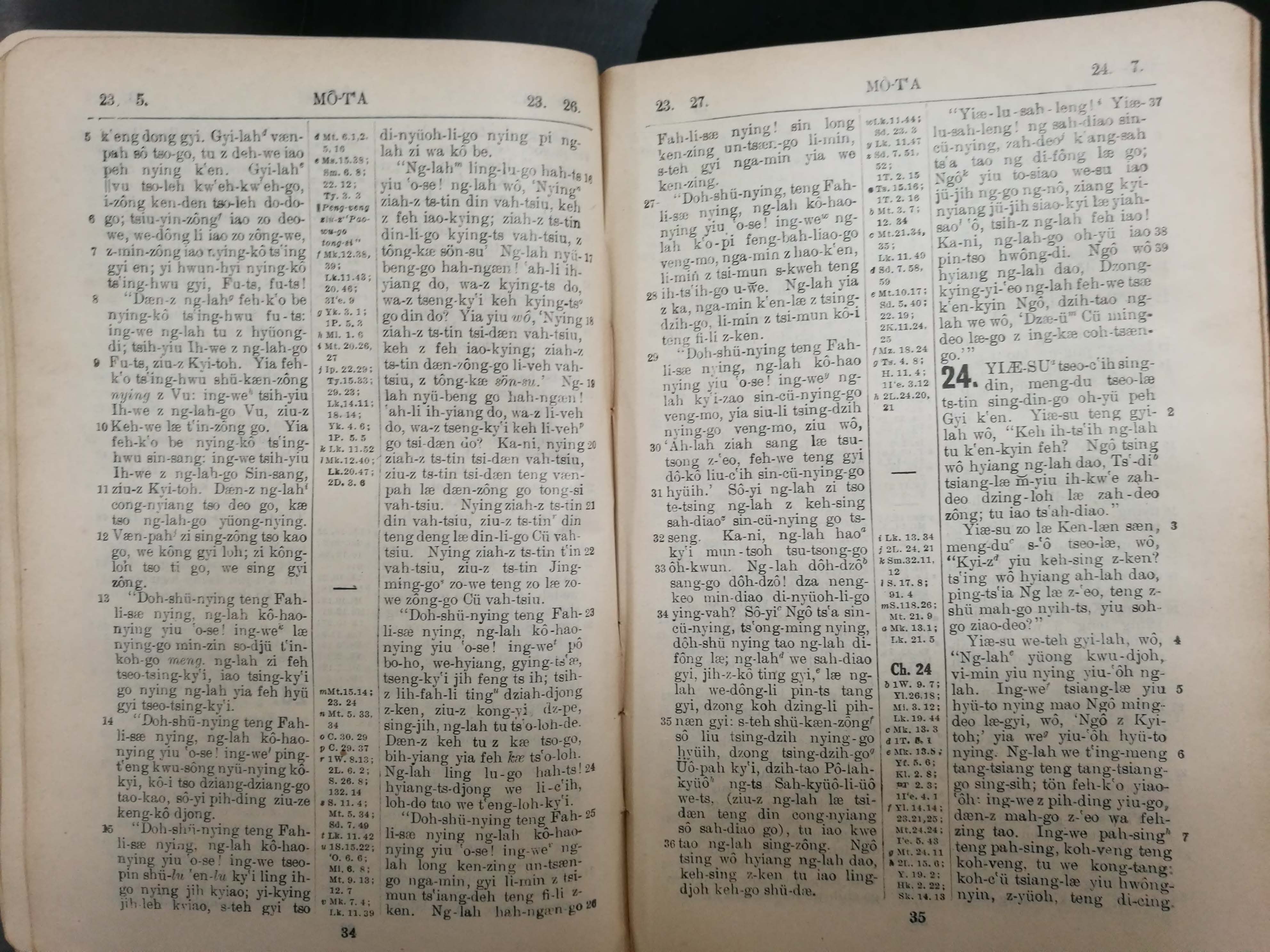1929年寧波話羅馬字新約全書 馬太福音 23 章 5 節到 24 章 7 節