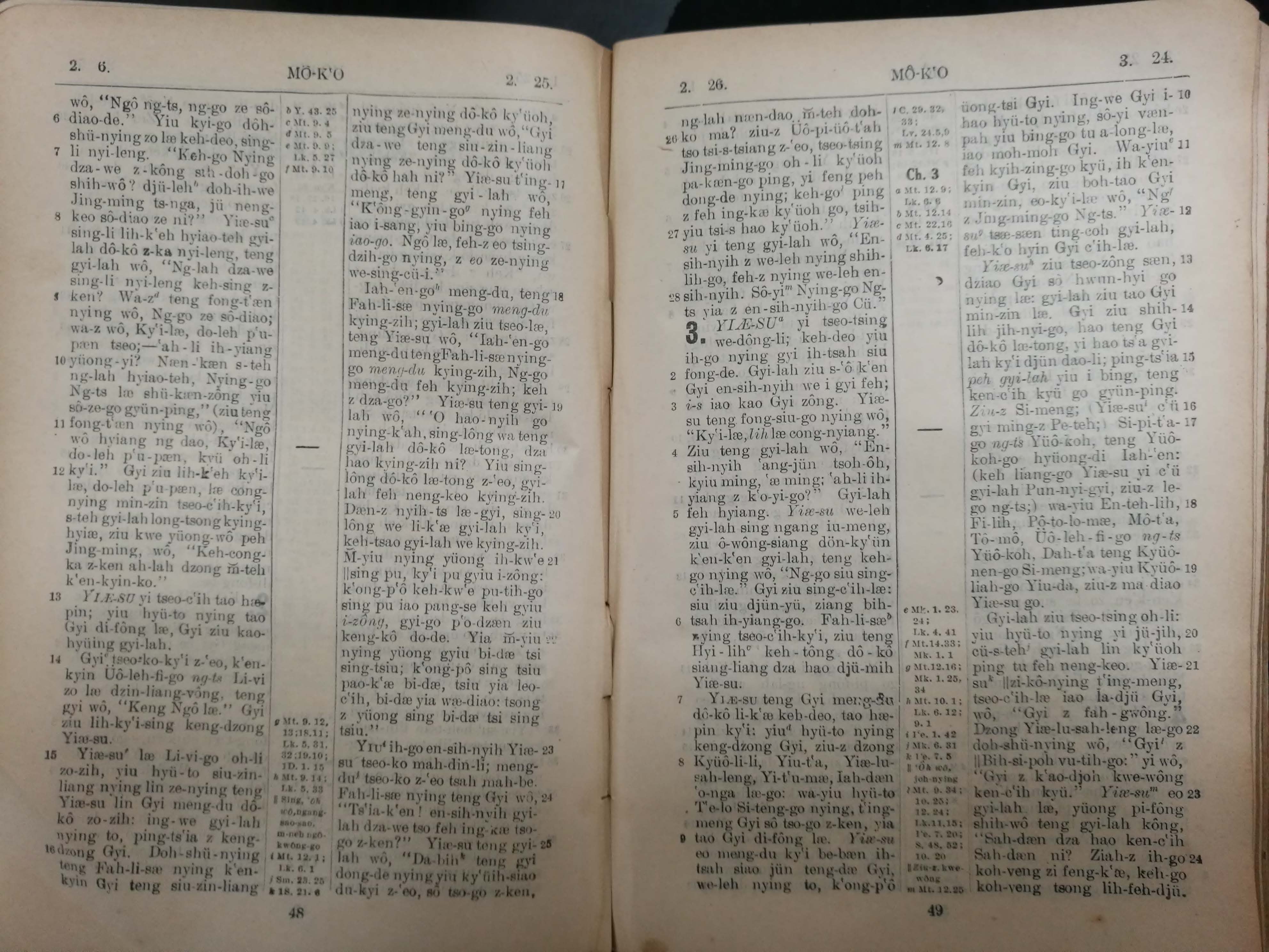 1929年寧波話羅馬字新約全書 馬可福音 2 章 6 節到 3 章 24 節