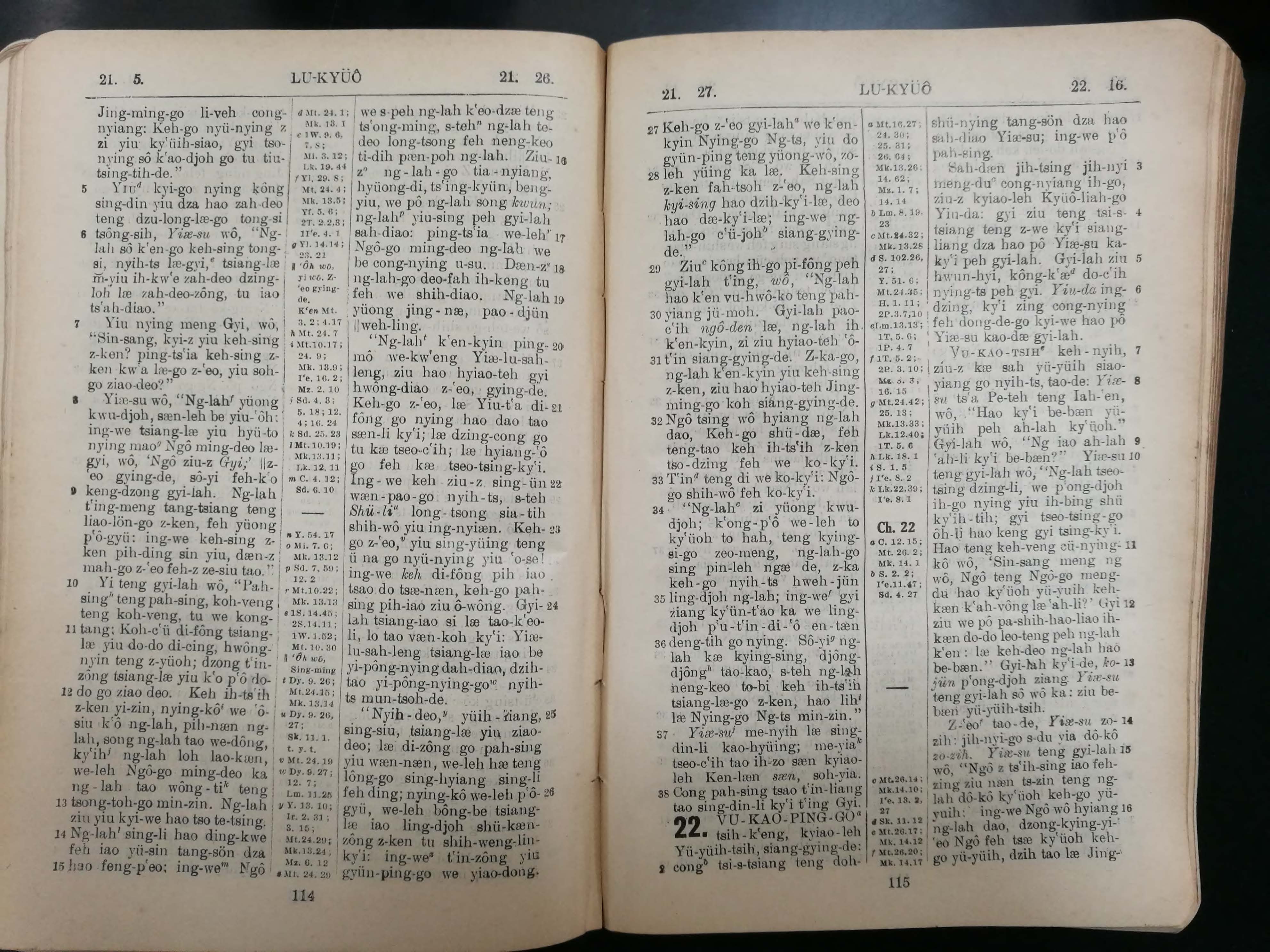 1929年寧波話羅馬字新約全書 路加福音 21 章 5 節到 22 章 16 節