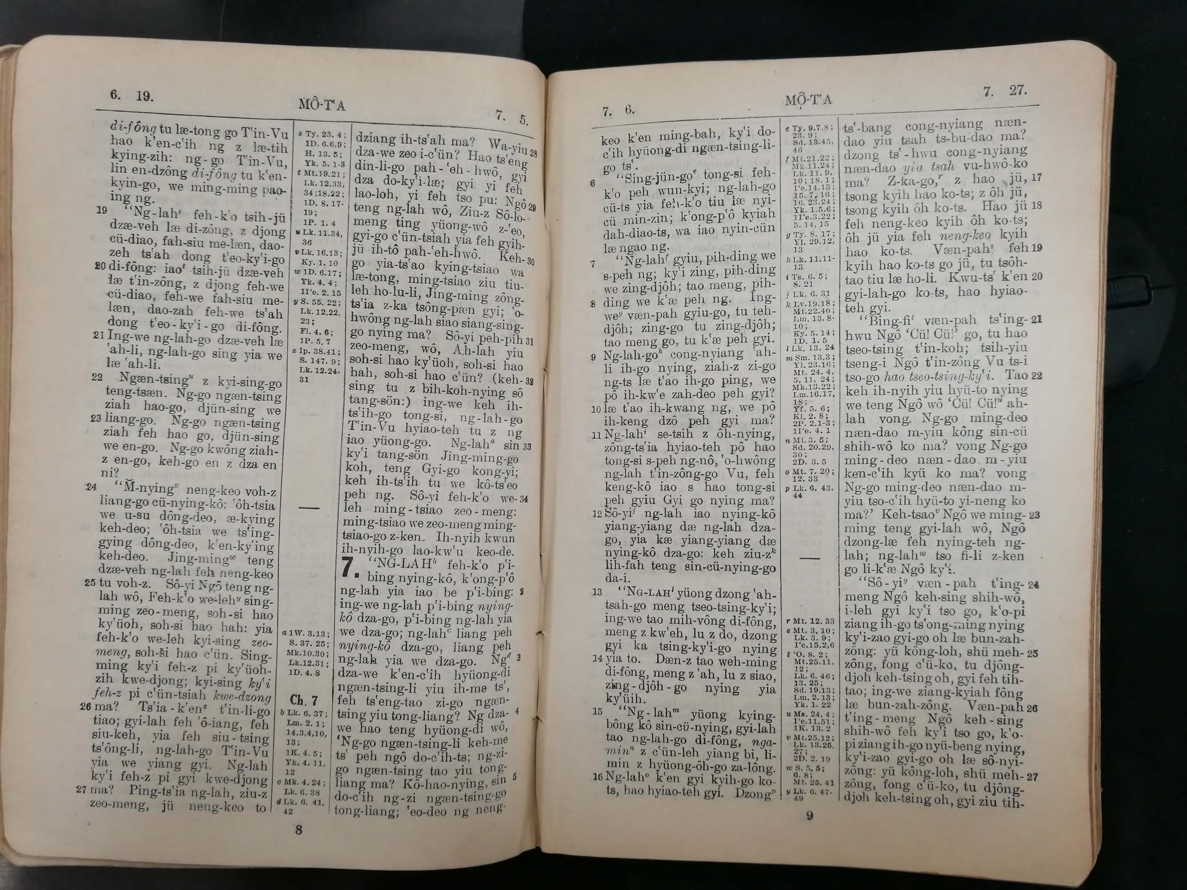 1929年寧波話羅馬字新約全書 馬太福音 6 章 19 節到 7 章 27 節