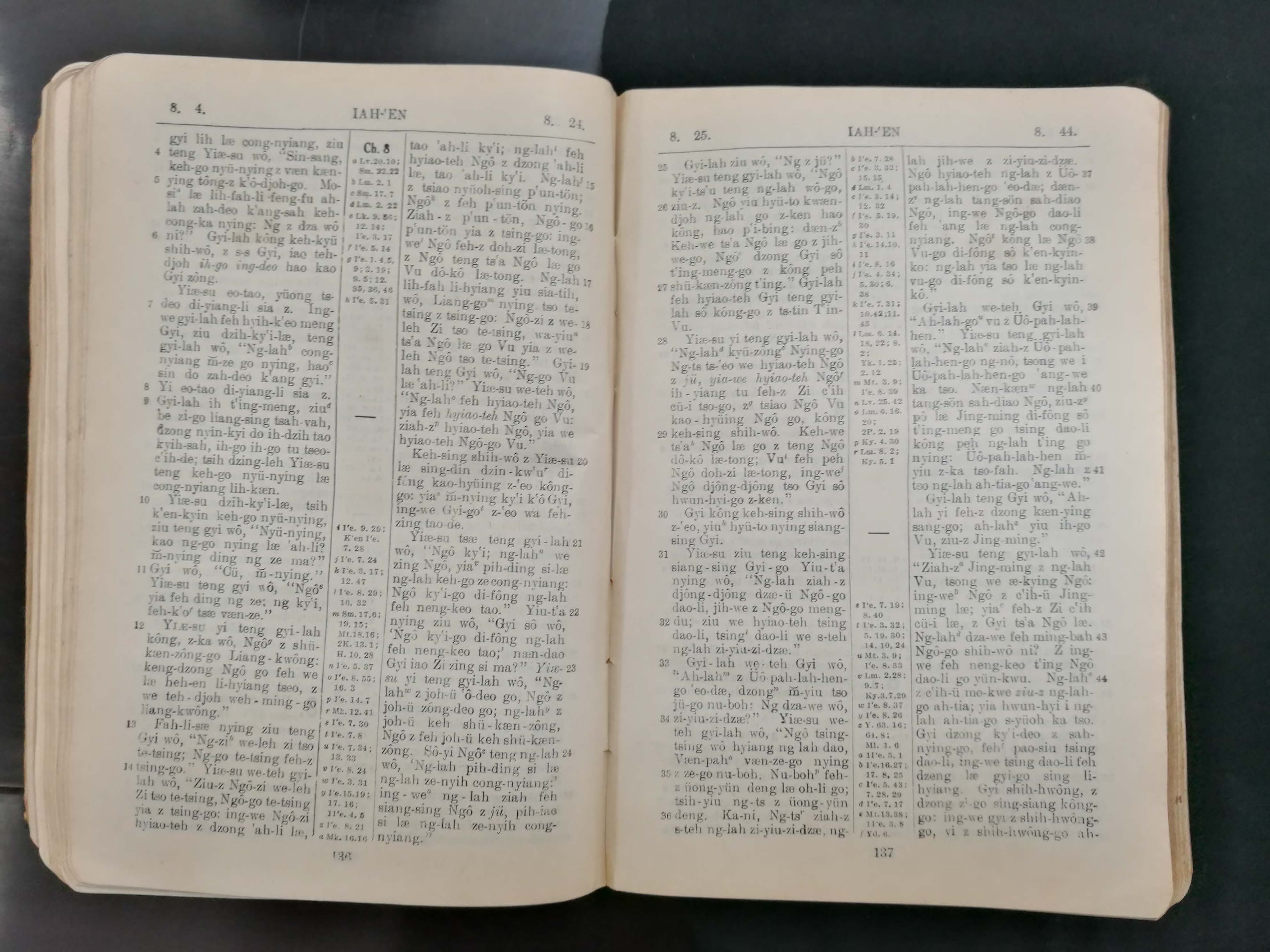 1929年寧波話羅馬字新約全書 約翰福音 8 章 4 節到 8 章 44 節