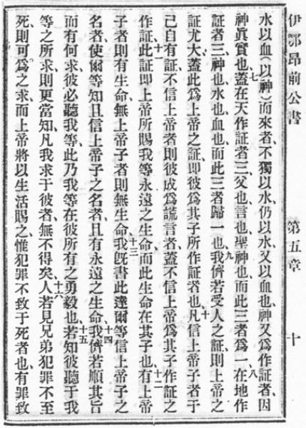 1910年東正教譯本新約與詩篇 約翰一書 5 章 7 節到 5 章 16 節