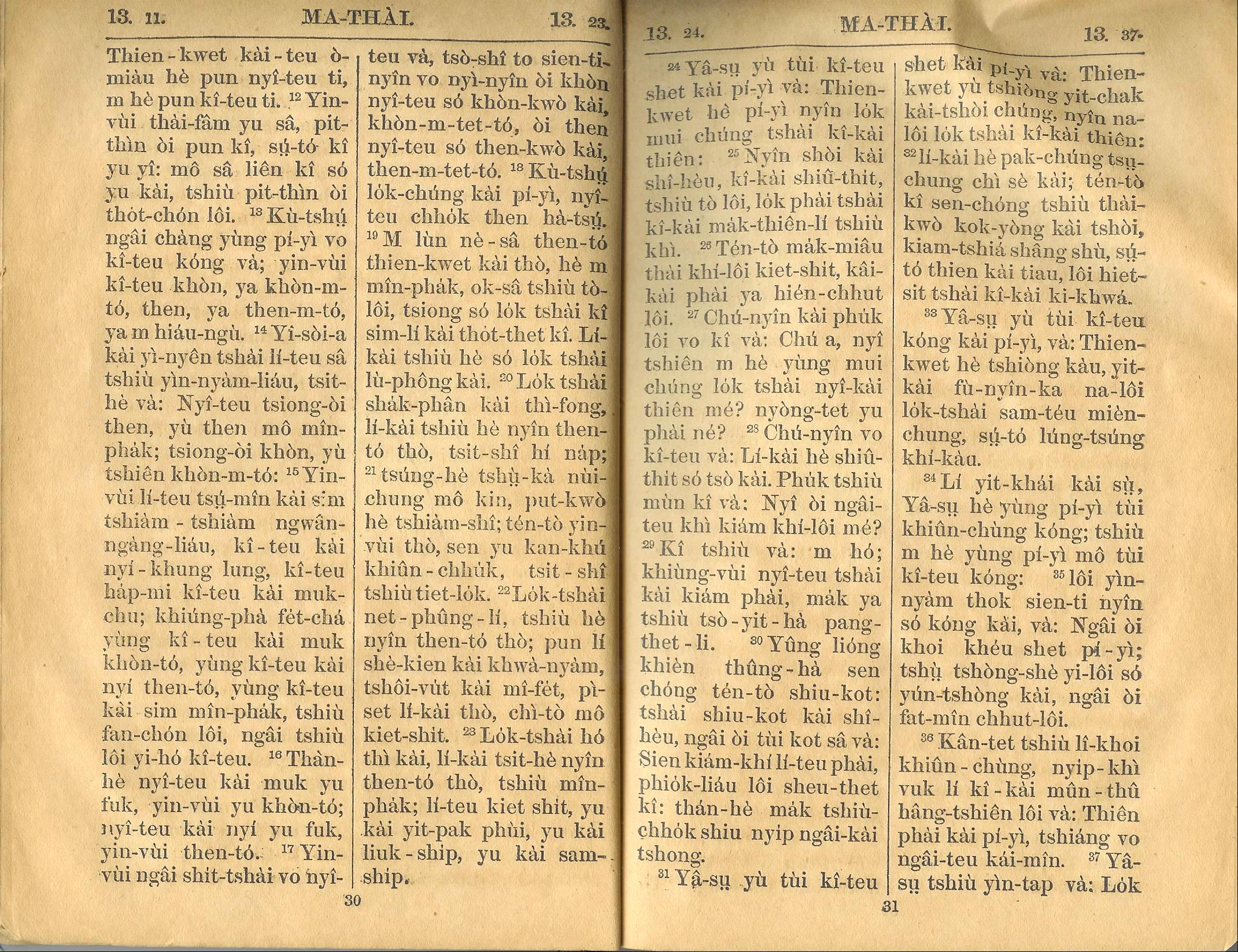 1924年新約全書 馬太福音 13 章 11 節到 13 章 37 節