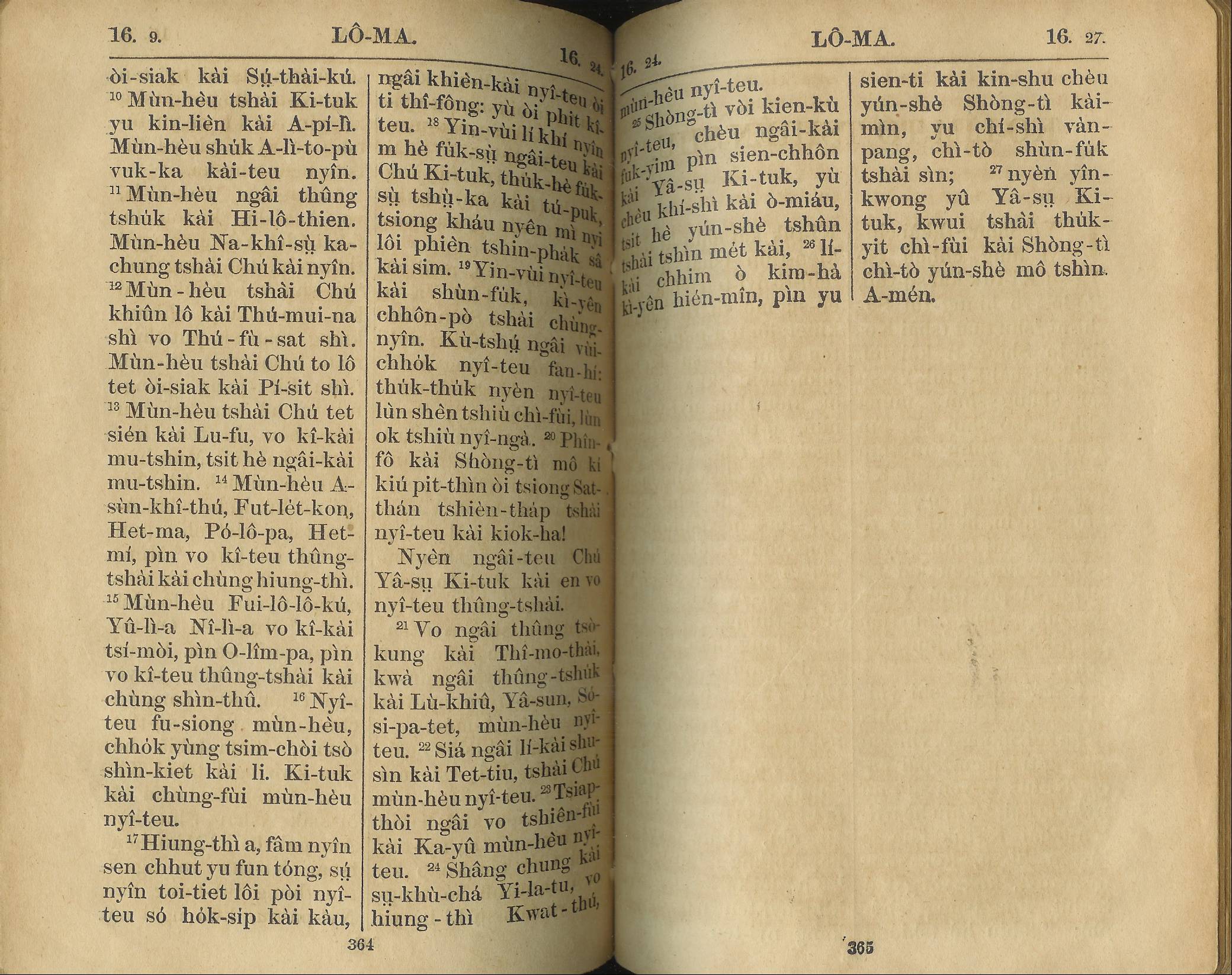 1924年新約全書 羅馬書 16 章 9 節到 16 章 27 節