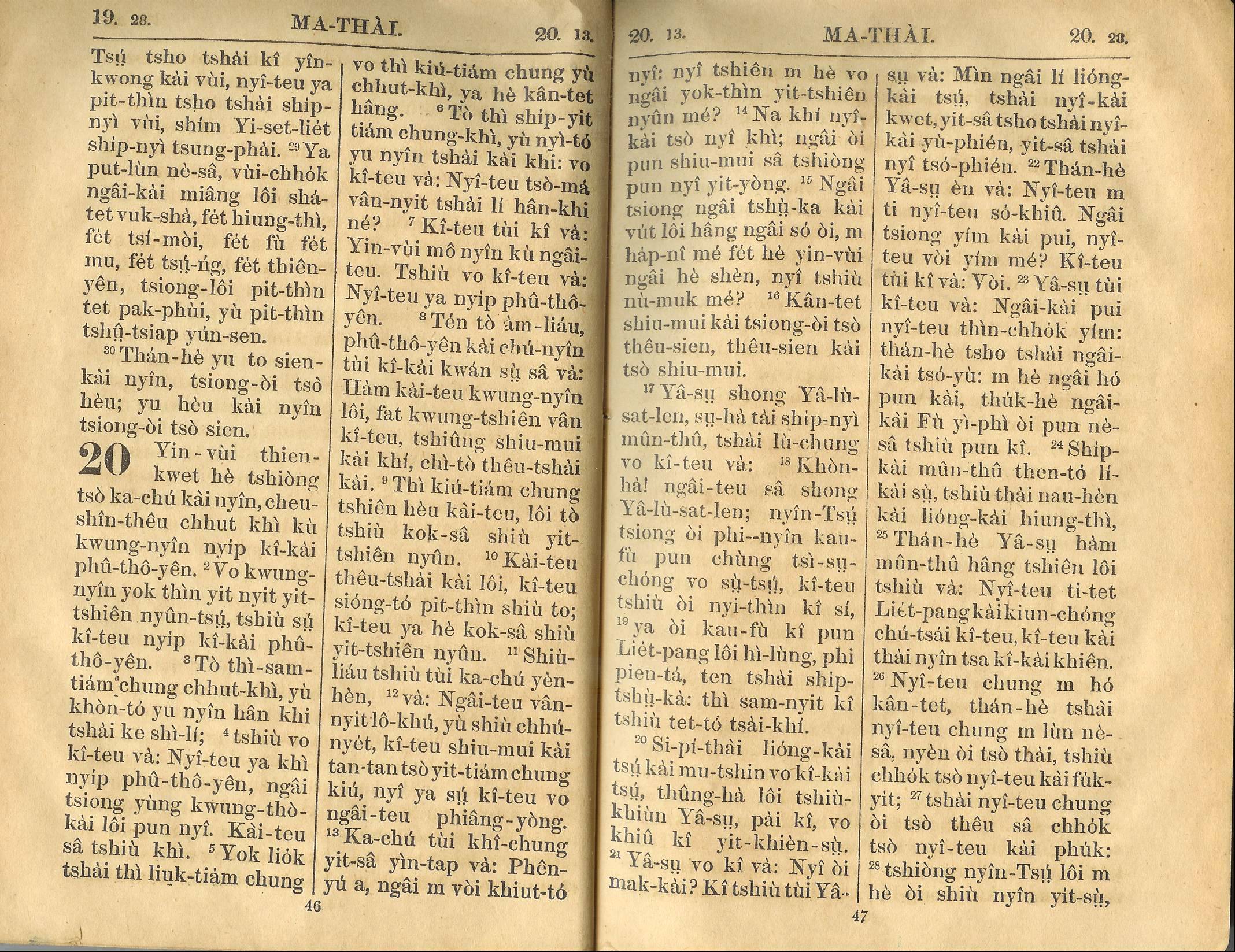 1924年新約全書 馬太福音 19 章 28 節到 20 章 28 節