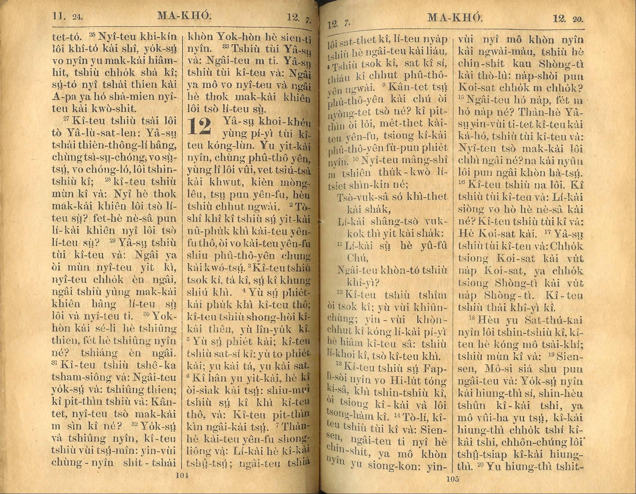 1924年新約全書 馬可福音 11 章 24 節到 12 章 20 節