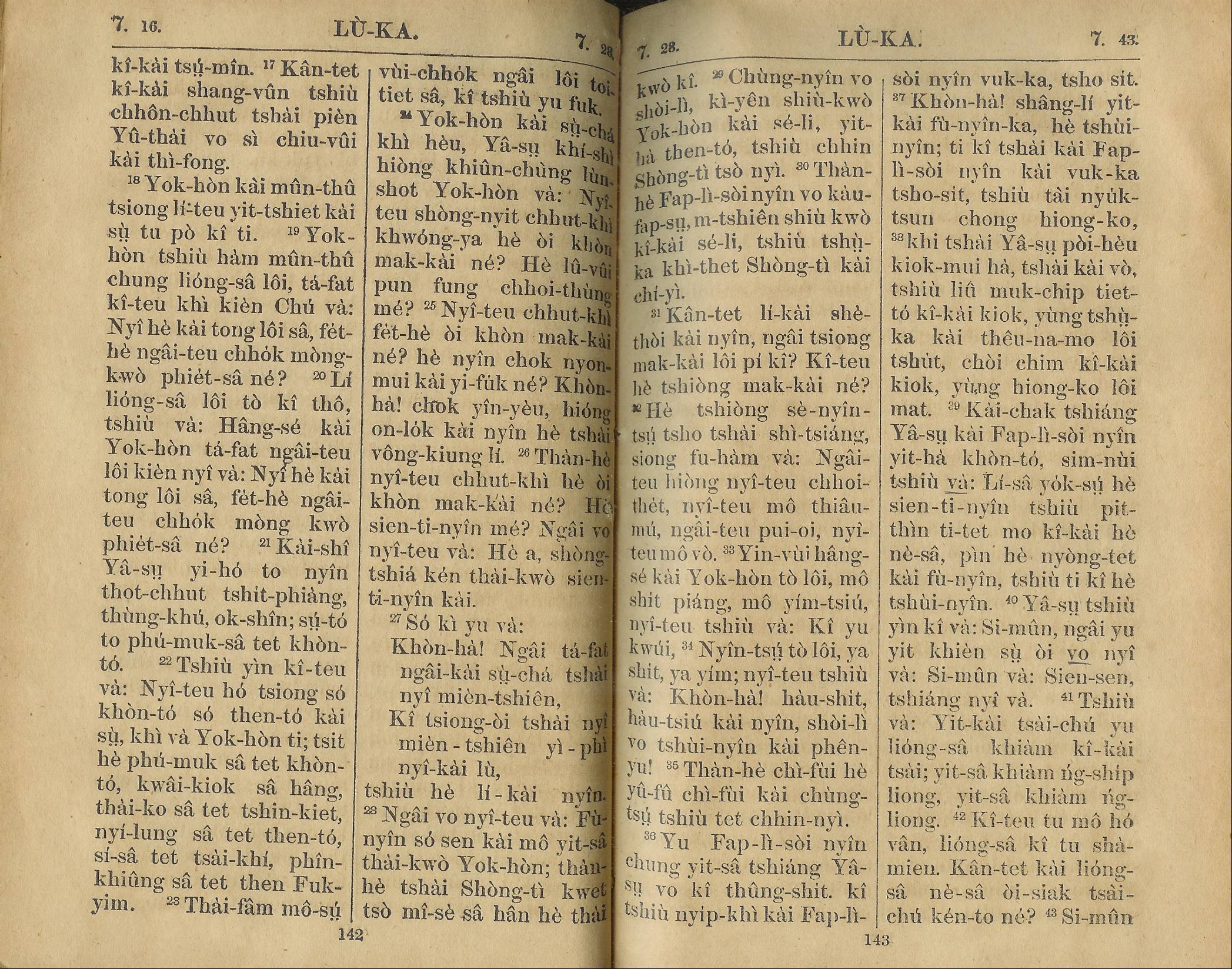 1924年新約全書 路加福音 7 章 16 節到 7 章 43 節