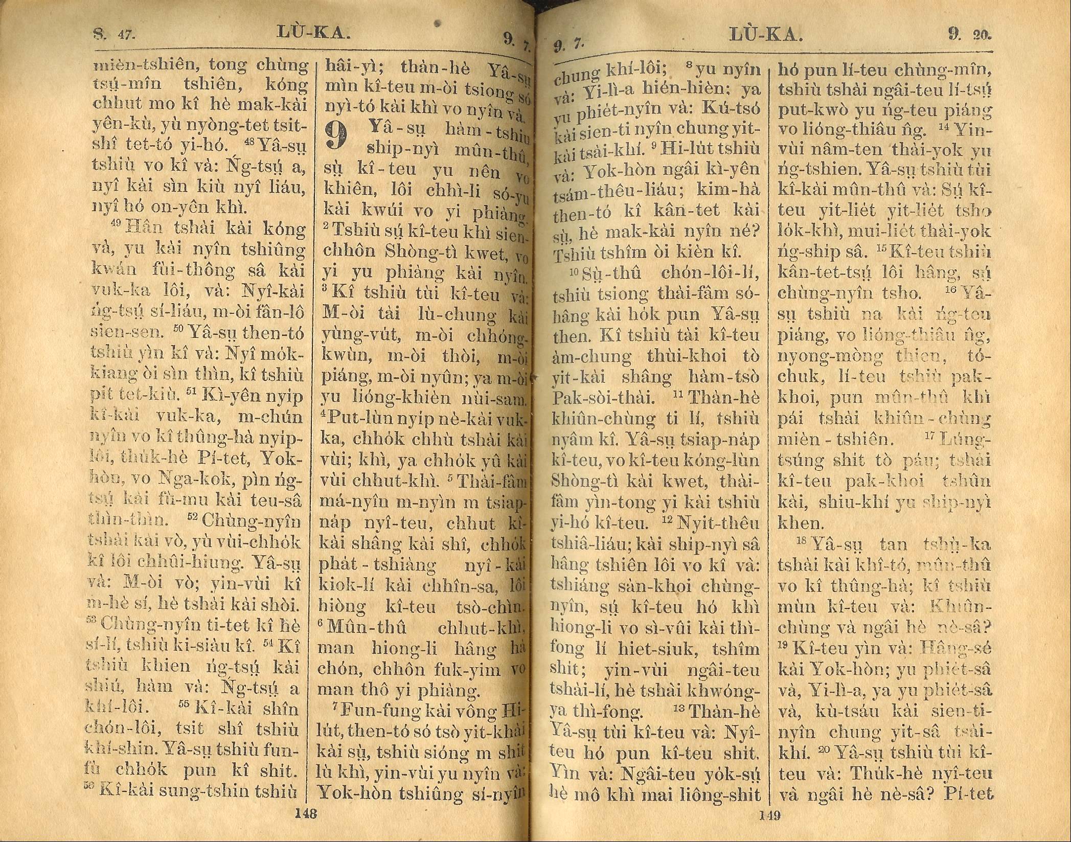 1924年新約全書 路加福音 8 章 47 節到 9 章 20 節