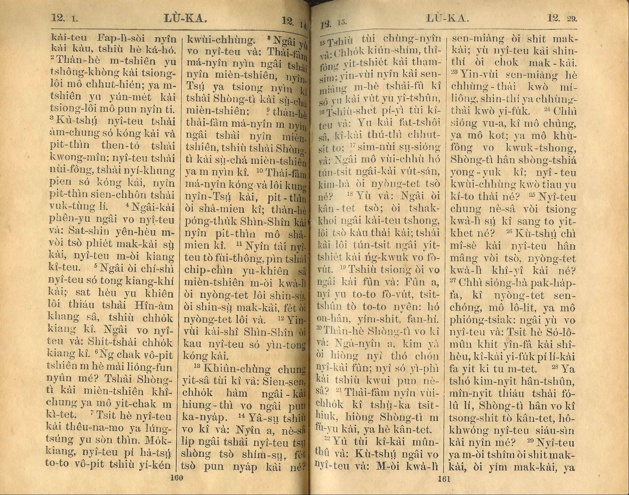 1924年新約全書 路加福音 12 章 1 節到 12 章 29 節