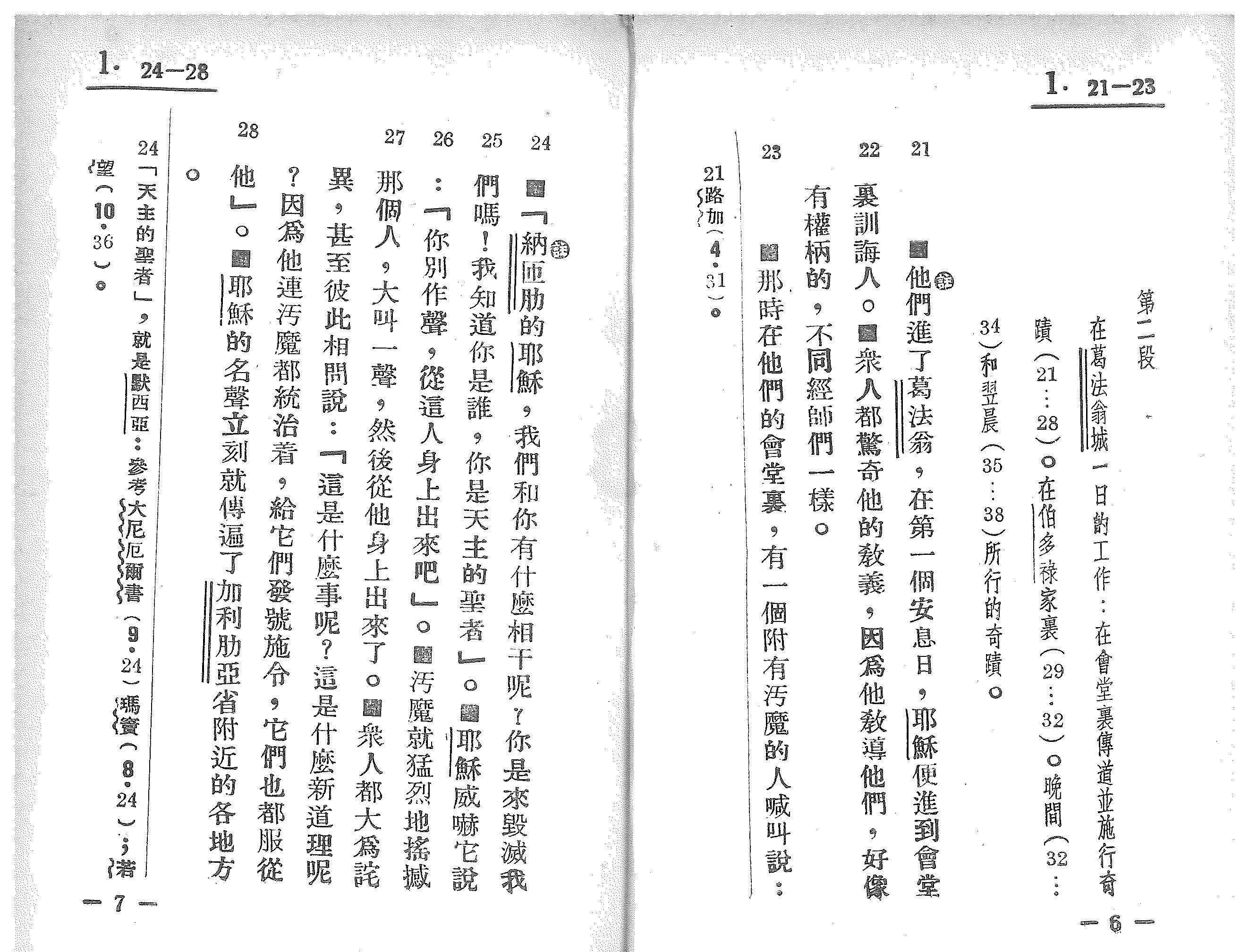 1939年蕭舜華四福音、使徒行傳與保羅書信 馬可福音 1 章 21 節到 1 章 28 節