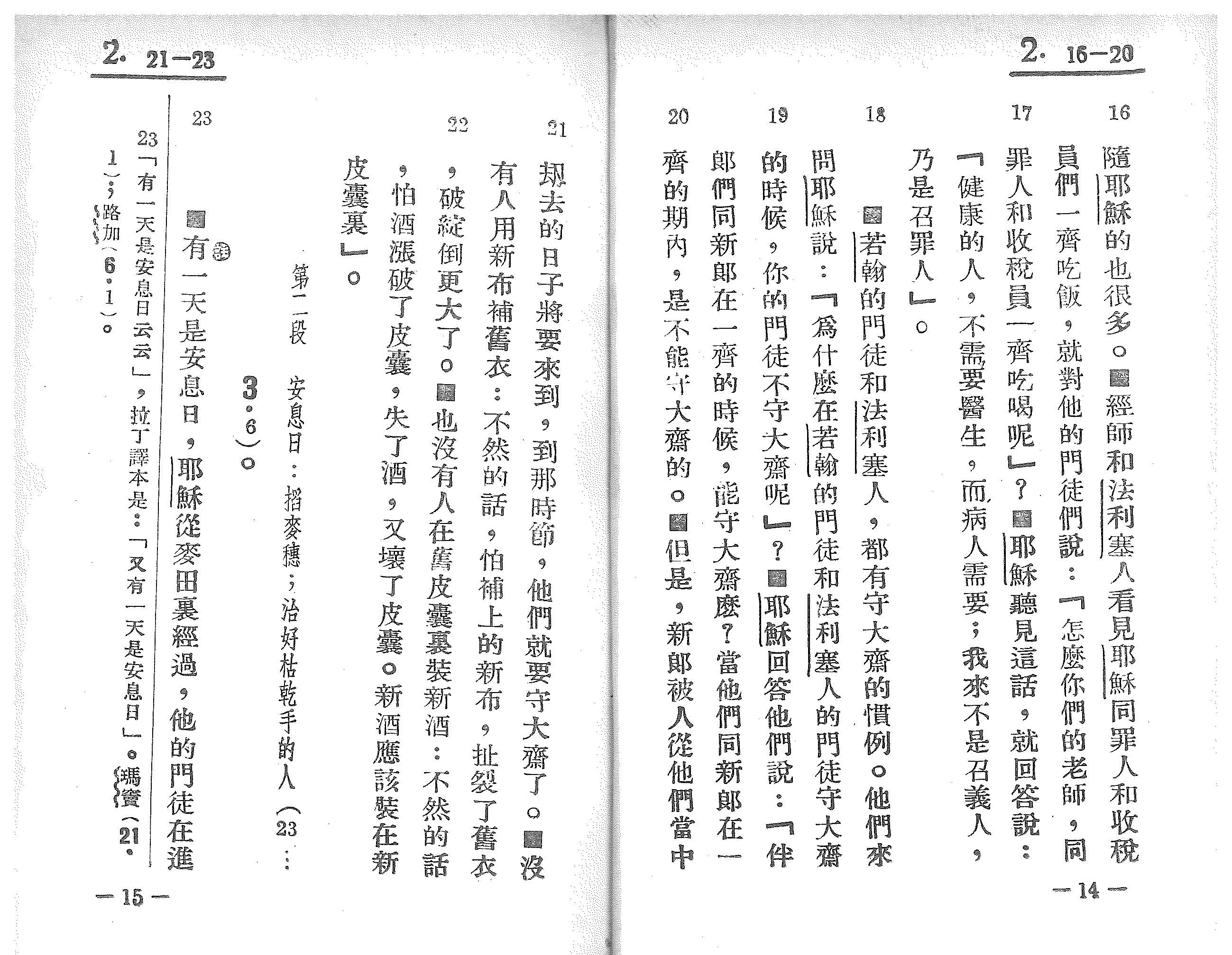 1939年蕭舜華四福音、使徒行傳與保羅書信 馬可福音 2 章 16 節到 2 章 23 節