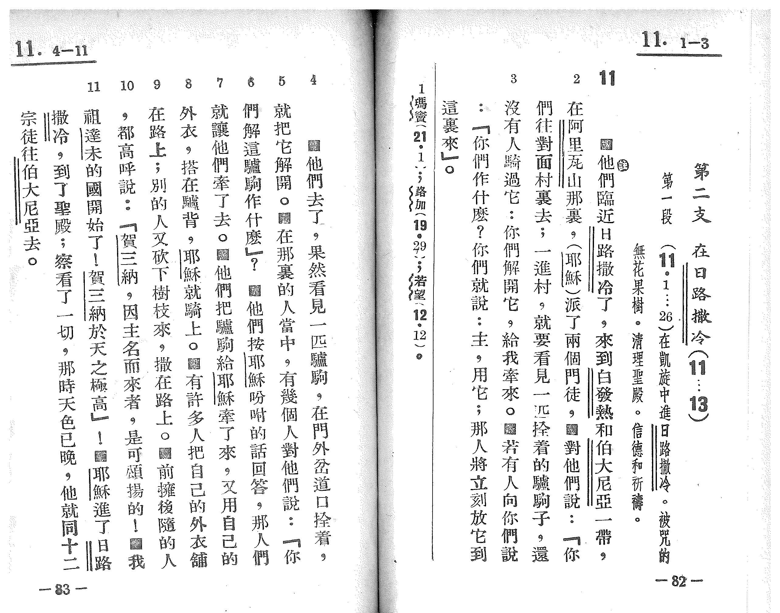 1939年蕭舜華四福音、使徒行傳與保羅書信 馬可福音 11 章 1 節到 11 章 11 節