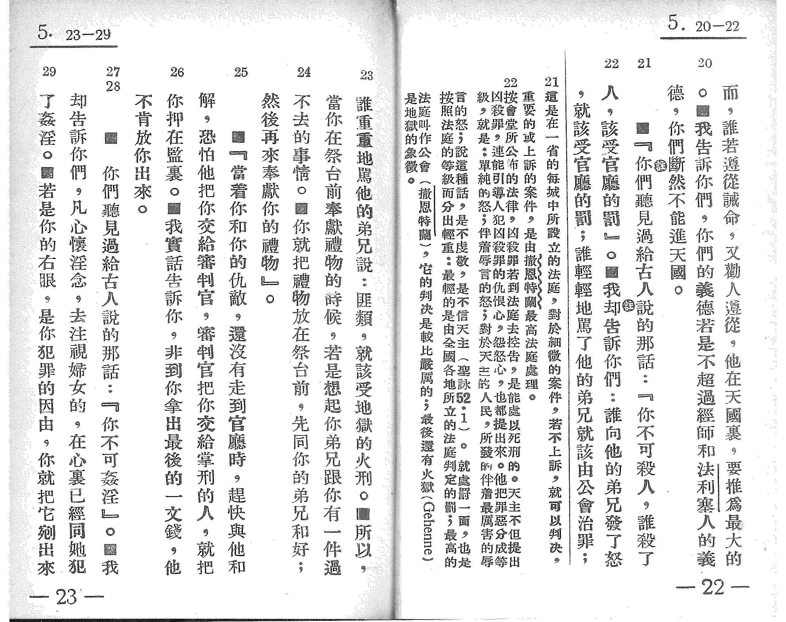 1939年蕭舜華四福音、使徒行傳與保羅書信 馬太福音 5 章 20 節到 5 章 29 節