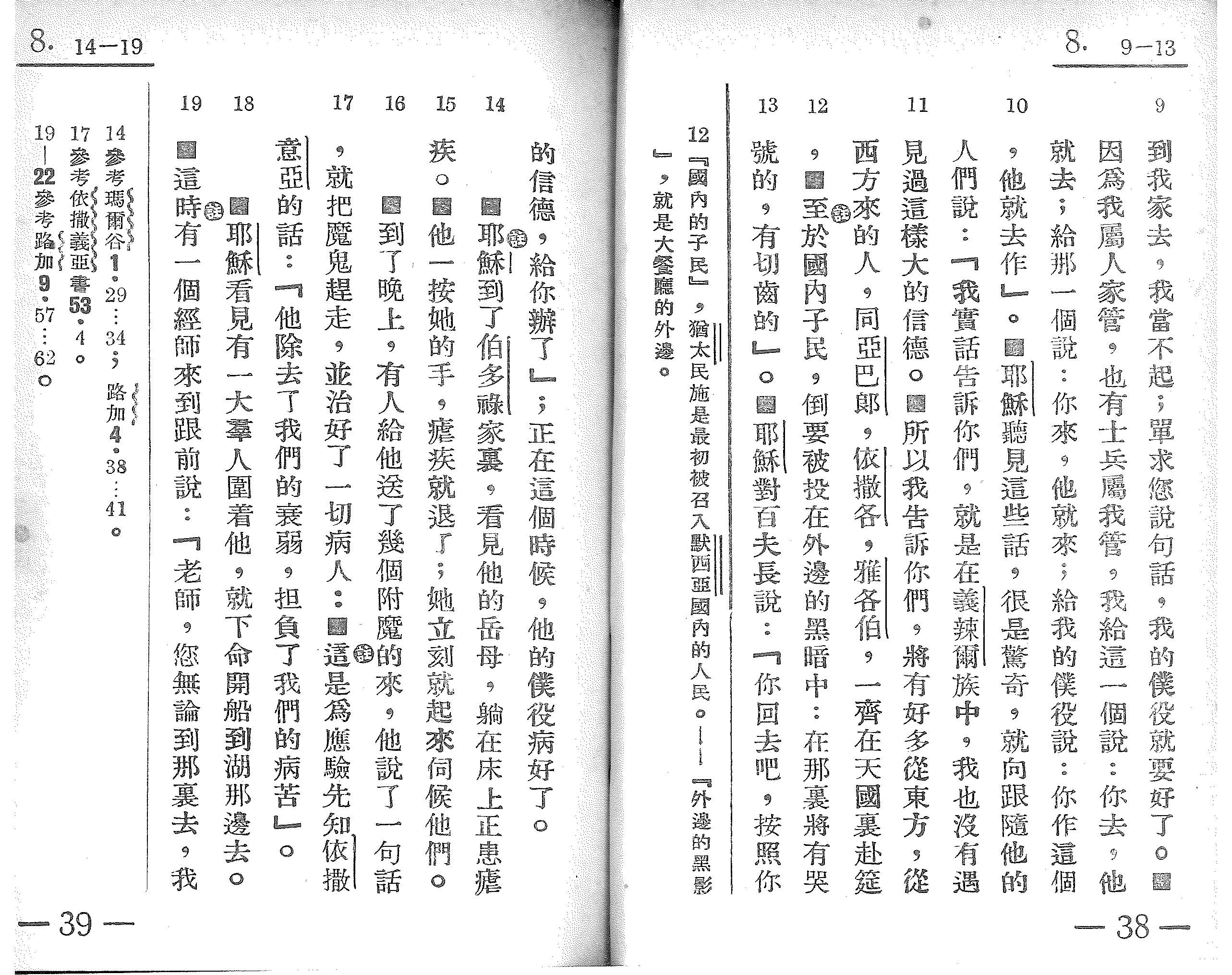1939年蕭舜華四福音、使徒行傳與保羅書信 馬太福音 8 章 9 節到 8 章 19 節