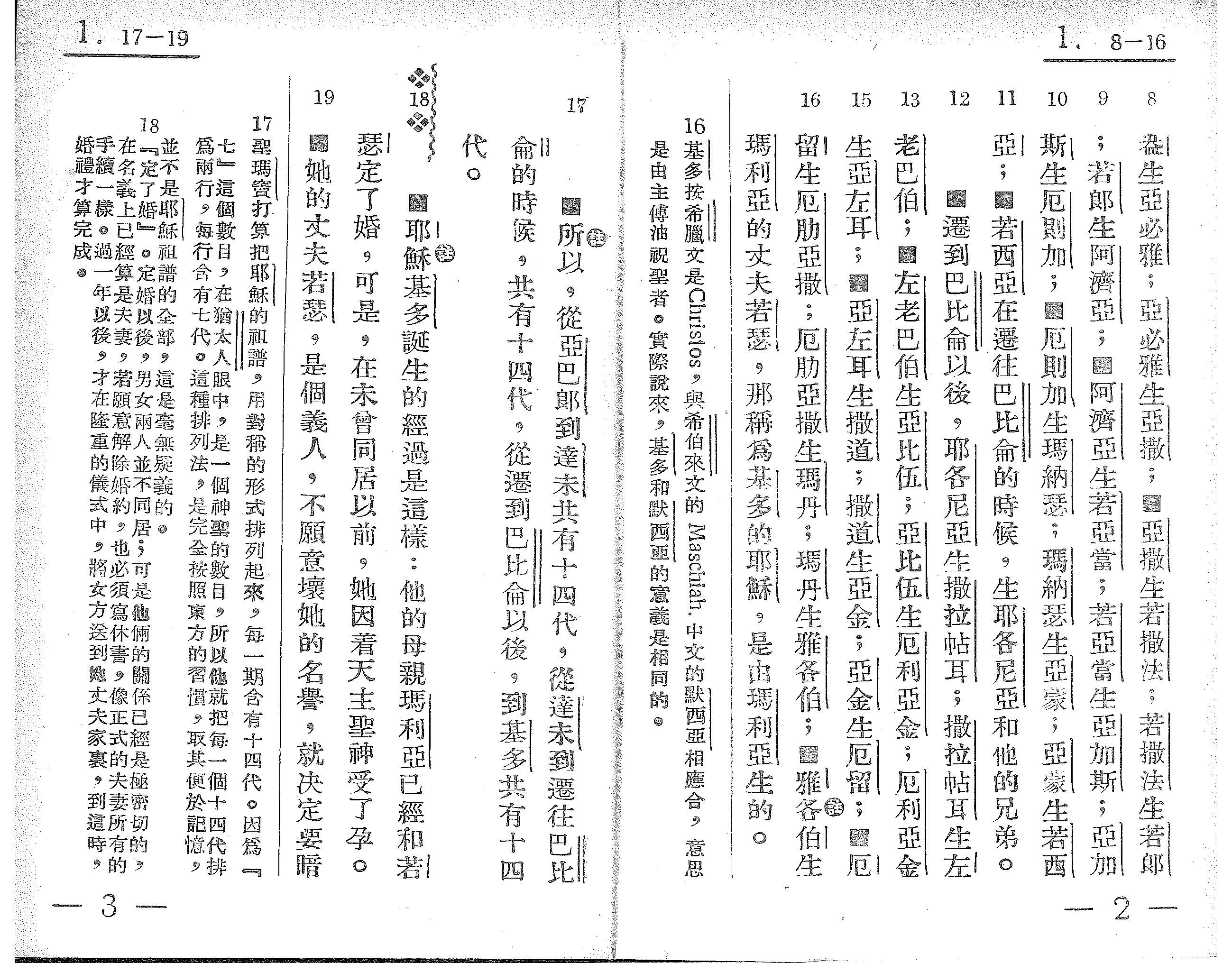 1939年蕭舜華四福音、使徒行傳與保羅書信 馬太福音 1 章 8 節到 1 章 19 節