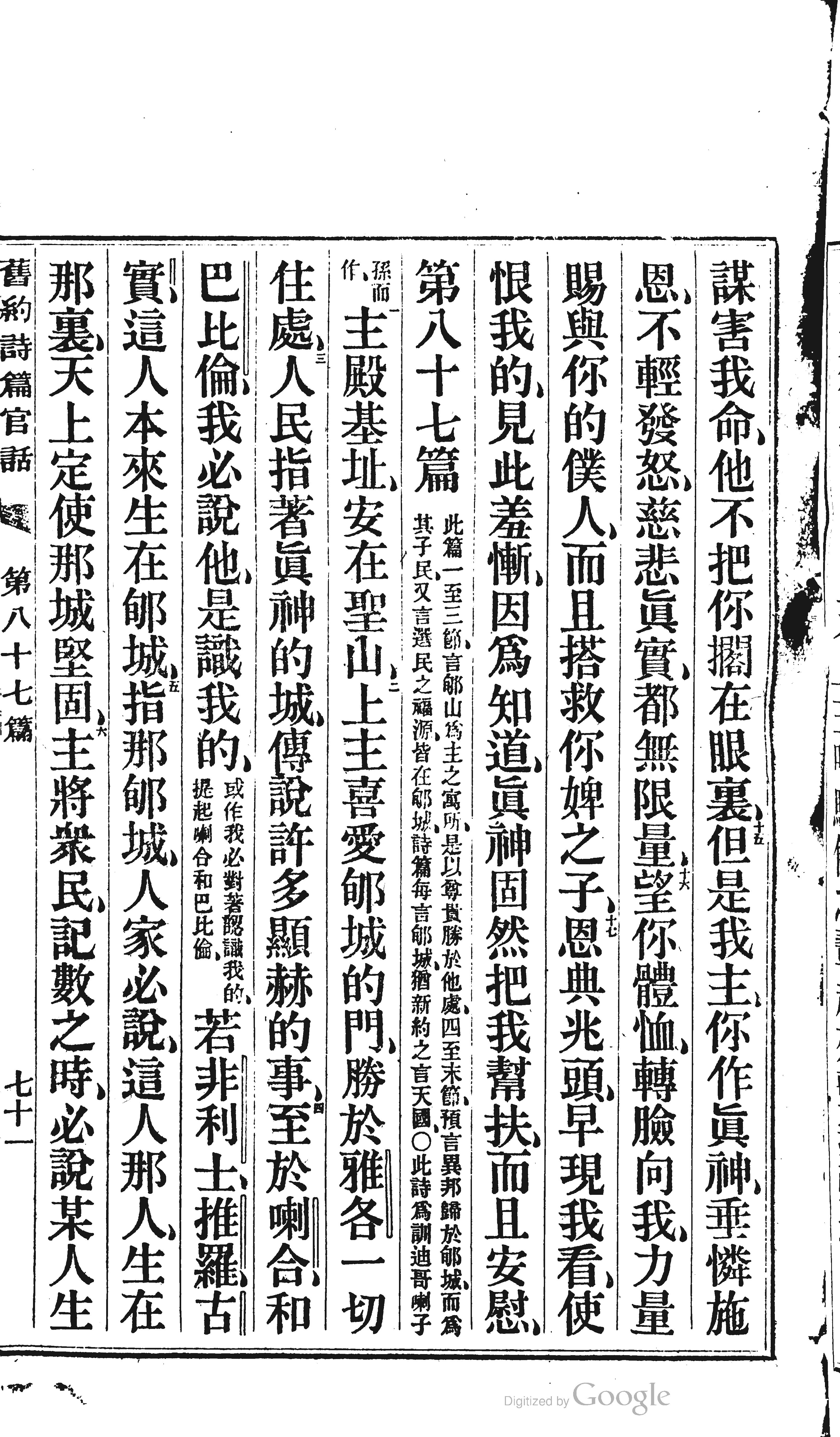 1870年舊約詩篇 詩篇 86 章 15 節到 87 章 6 節