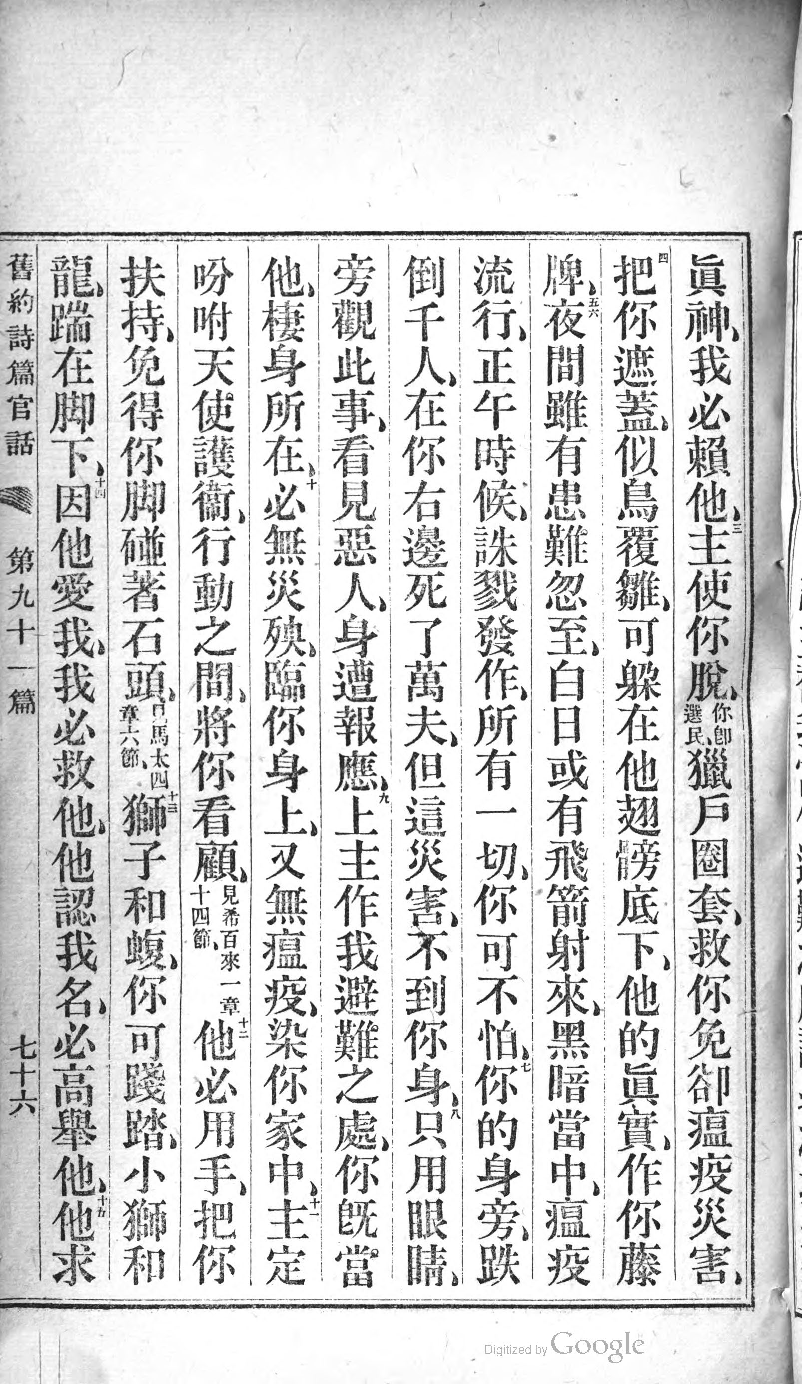 1870年舊約詩篇 詩篇 91 章 3 節到 91 章 15 節