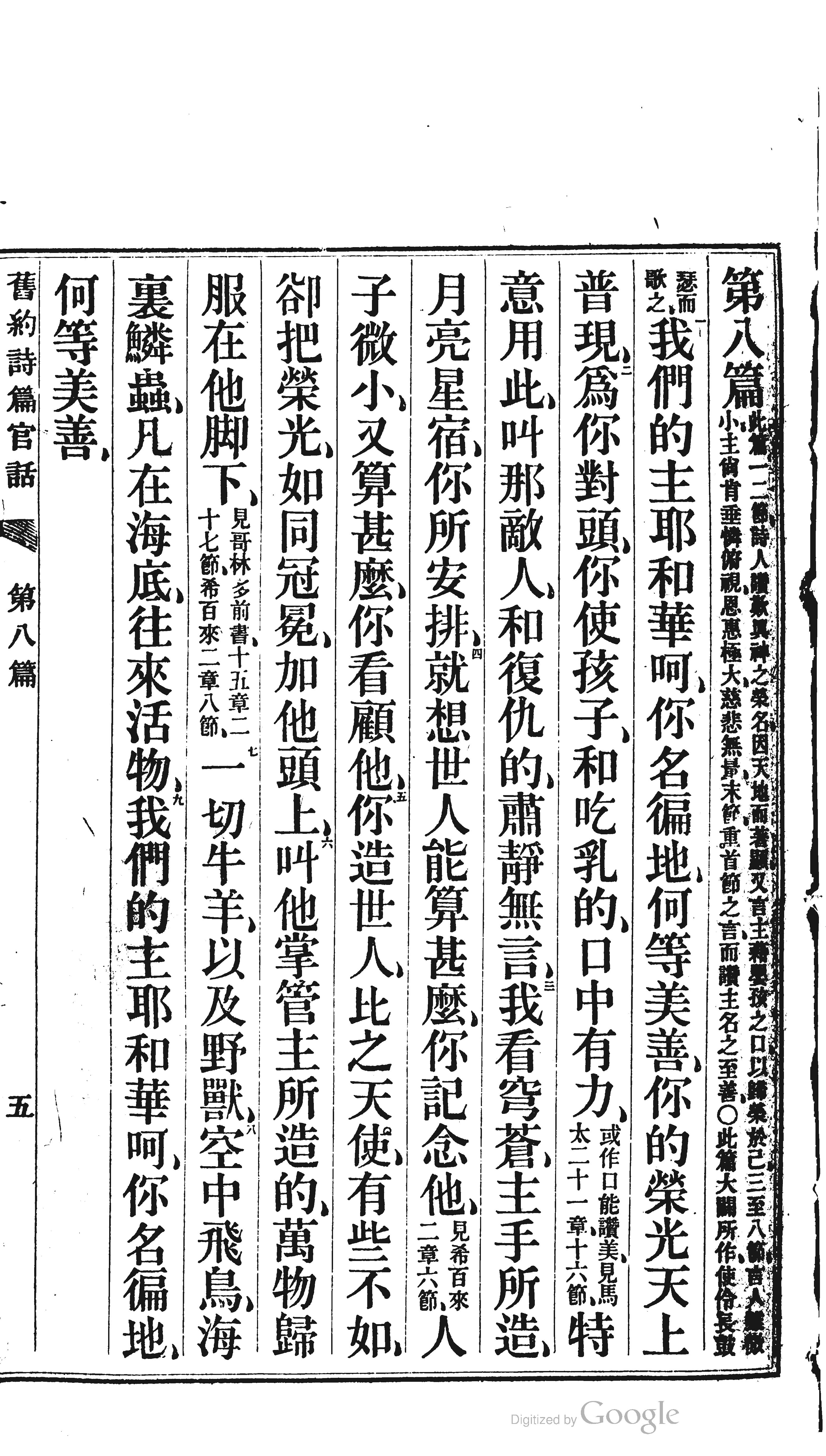 1870年舊約詩篇 詩篇 8 章 1 節到 8 章 9 節