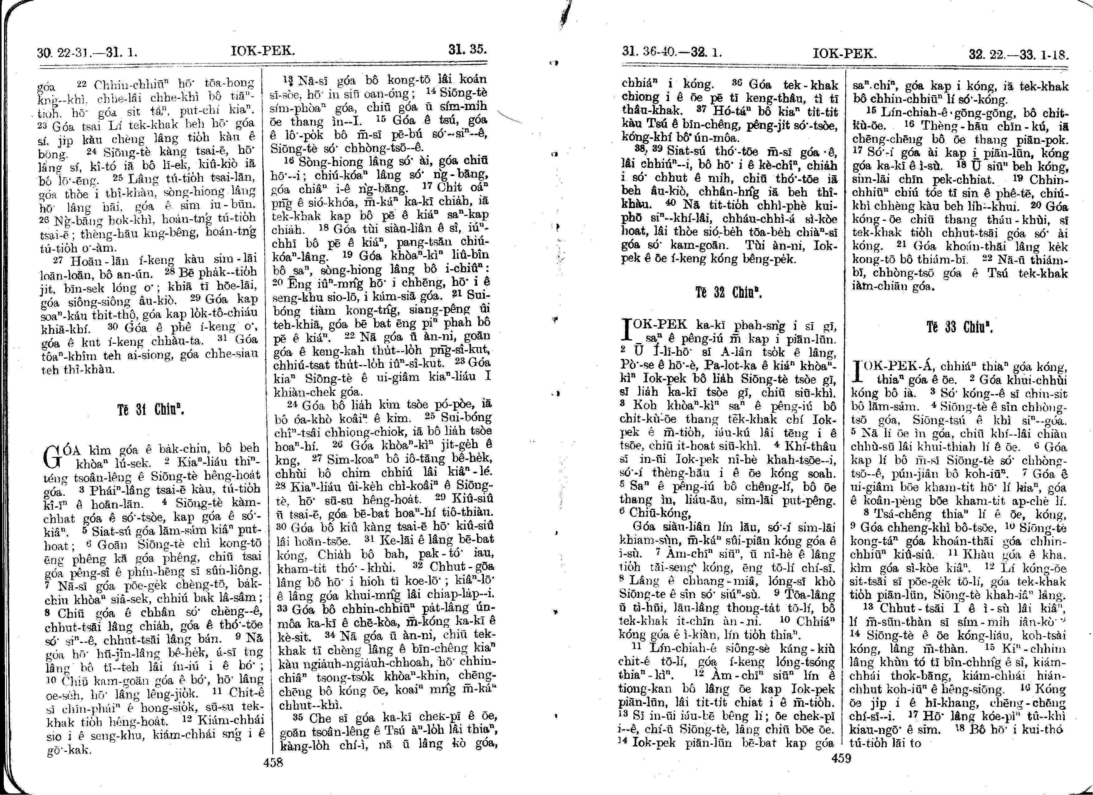 1930年馬雅各舊約全書+巴克禮新約全書 約伯記 30 章 22 節到 33 章 18 節