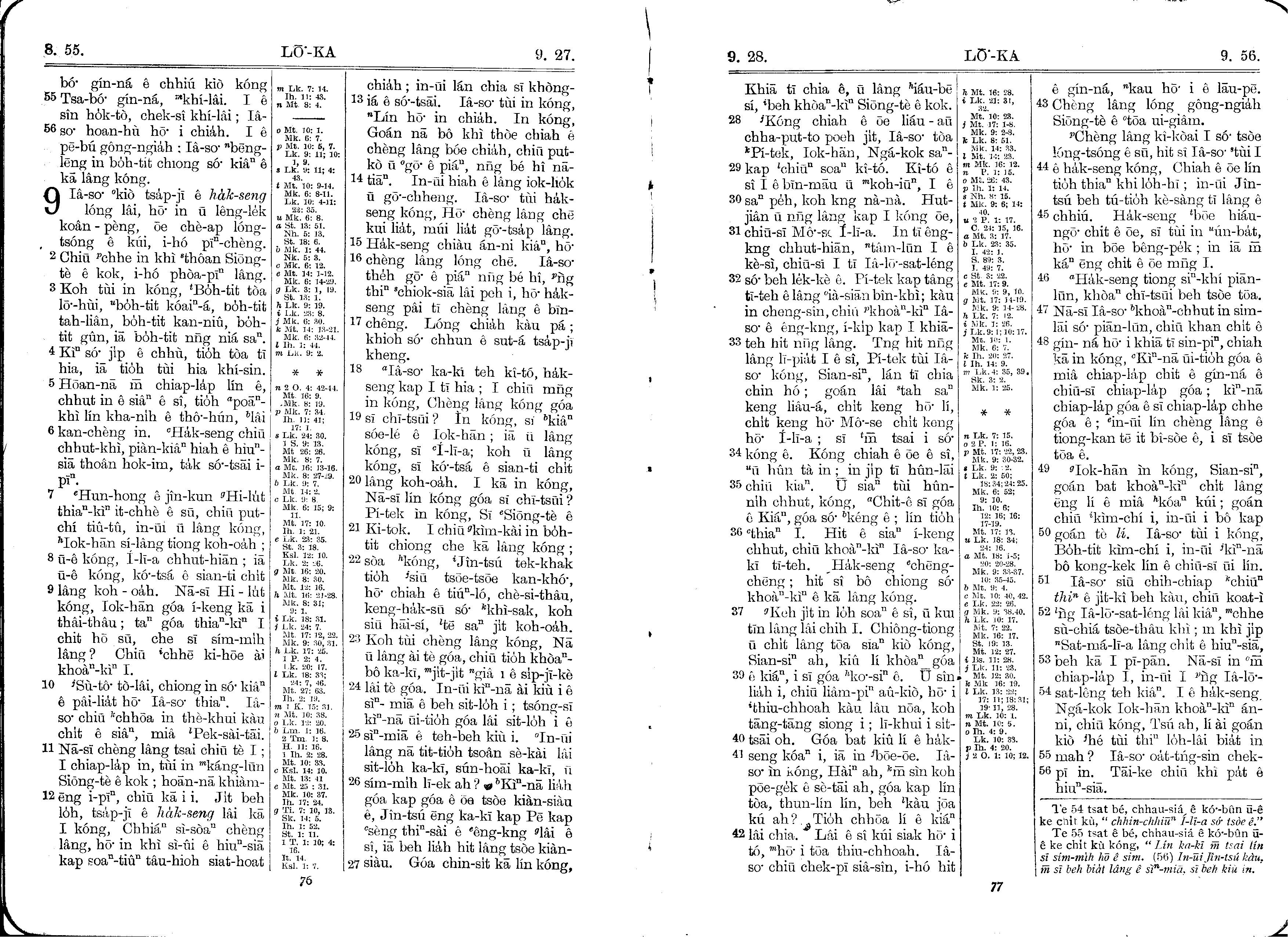 1930年馬雅各舊約全書+巴克禮新約全書 路加福音 8 章 55 節到 9 章 56 節