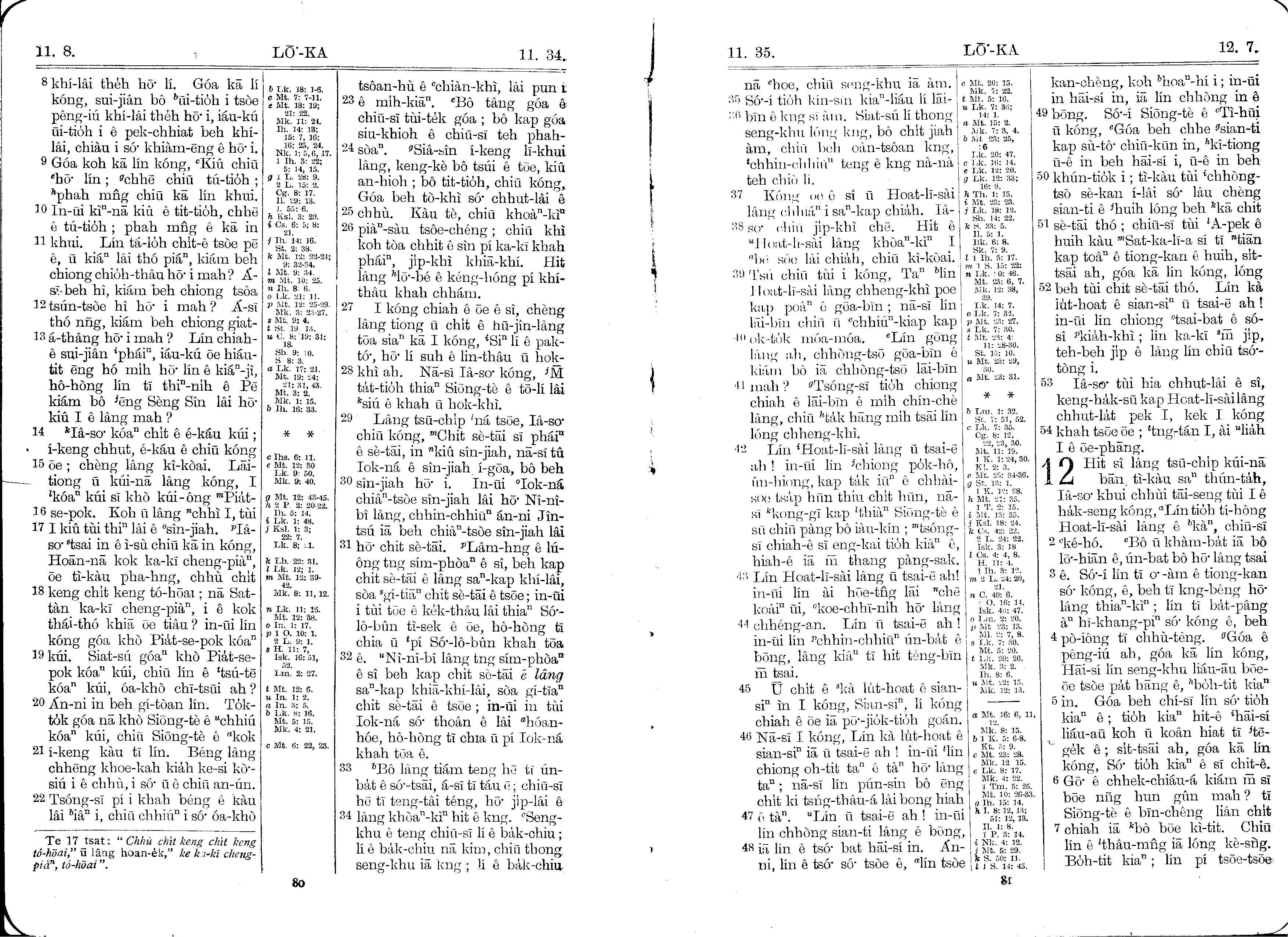 1930年馬雅各舊約全書+巴克禮新約全書 路加福音 11 章 8 節到 12 章 7 節