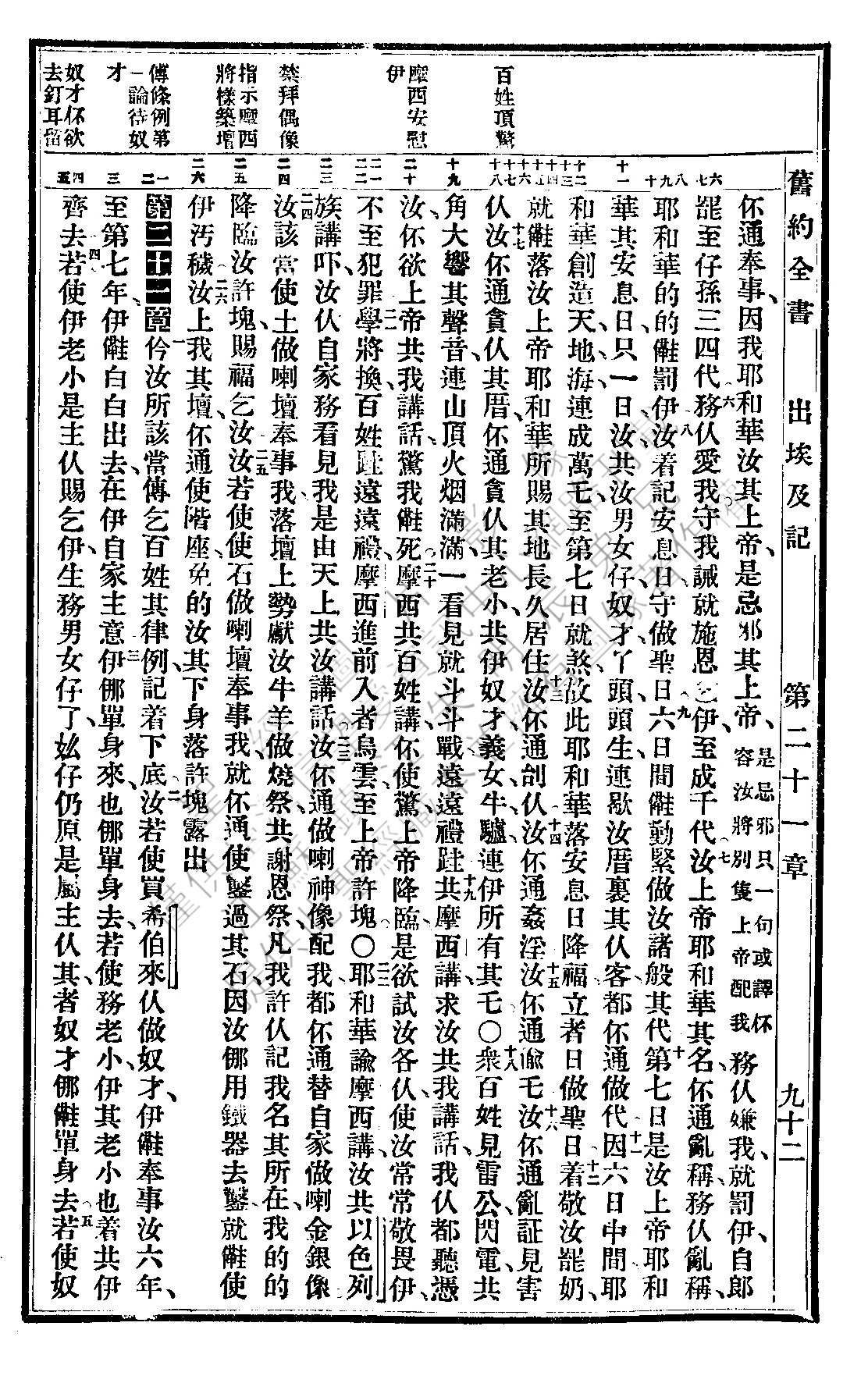 1937年福州土腔聖經 出埃及記 20 章 6 節到 21 章 5 節