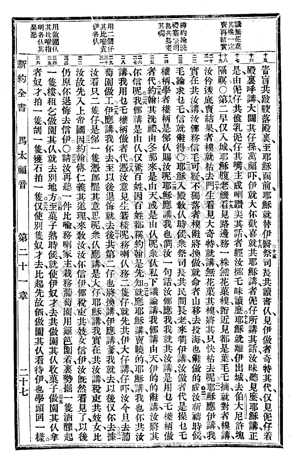 1937年福州土腔聖經 馬太福音 21 章 15 節到 21 章 36 節