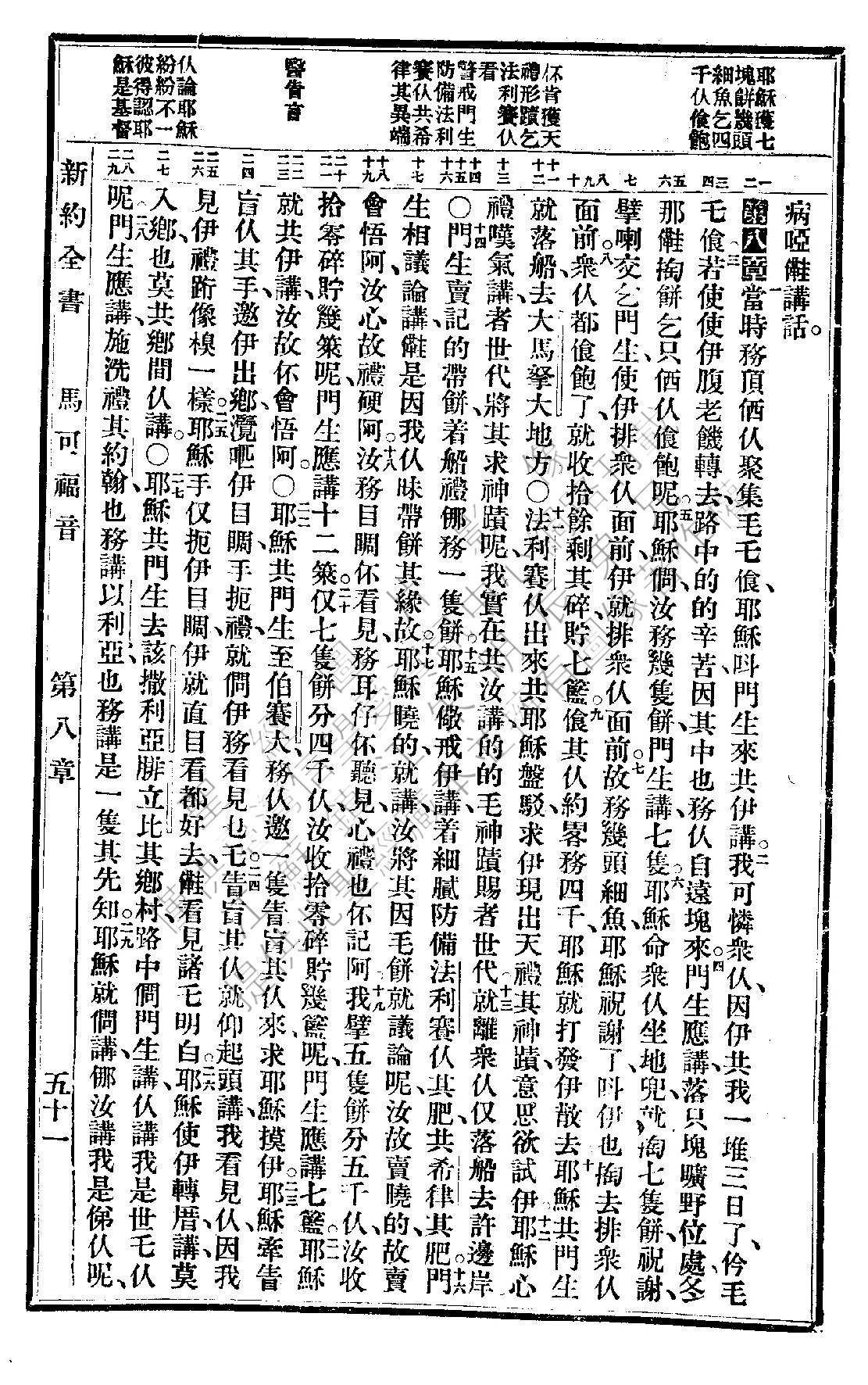 1937年福州土腔聖經 馬可福音 8 章 1 節到 8 章 29 節