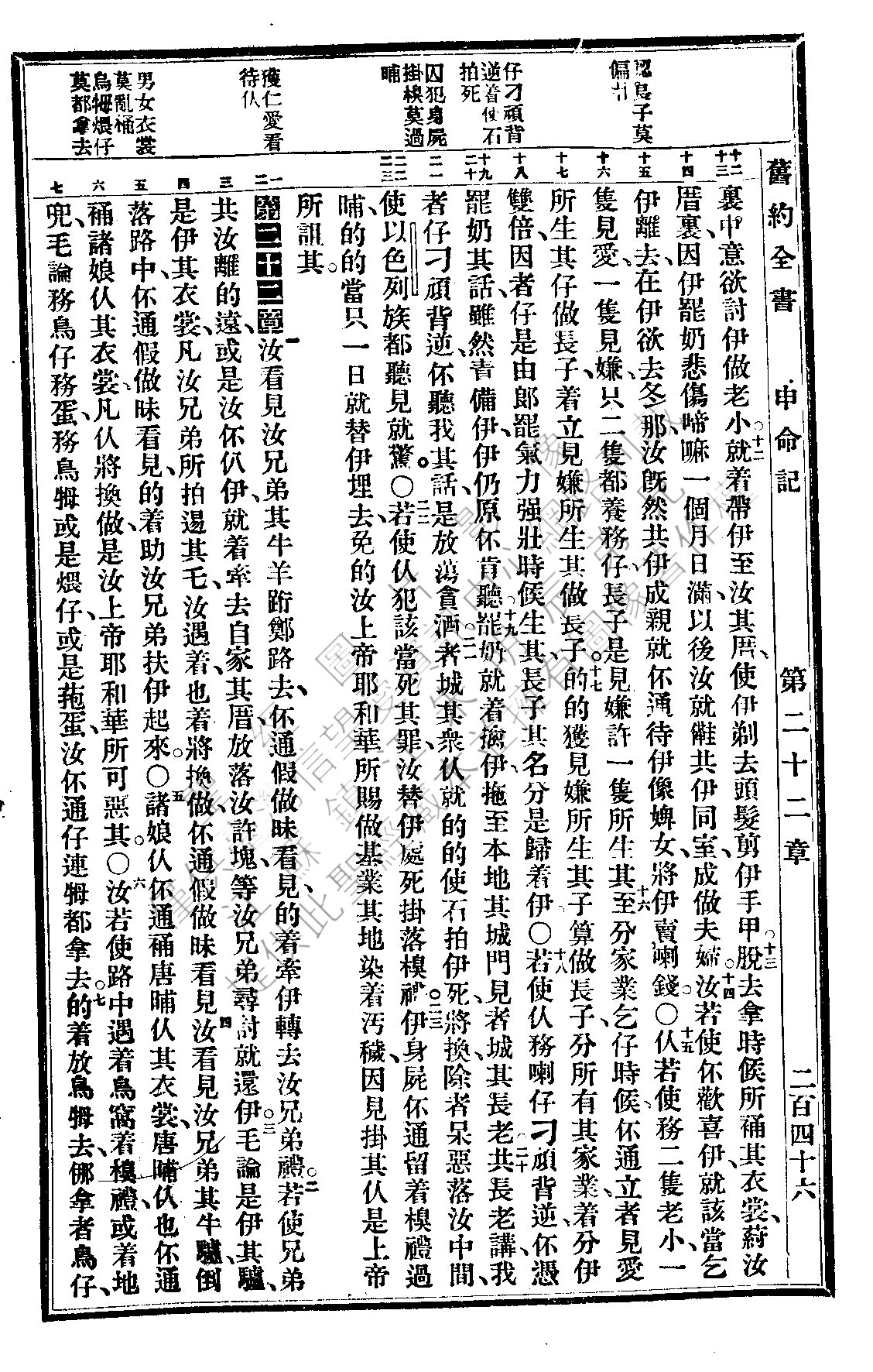 1937年福州土腔聖經 申命記 21 章 12 節到 22 章 7 節