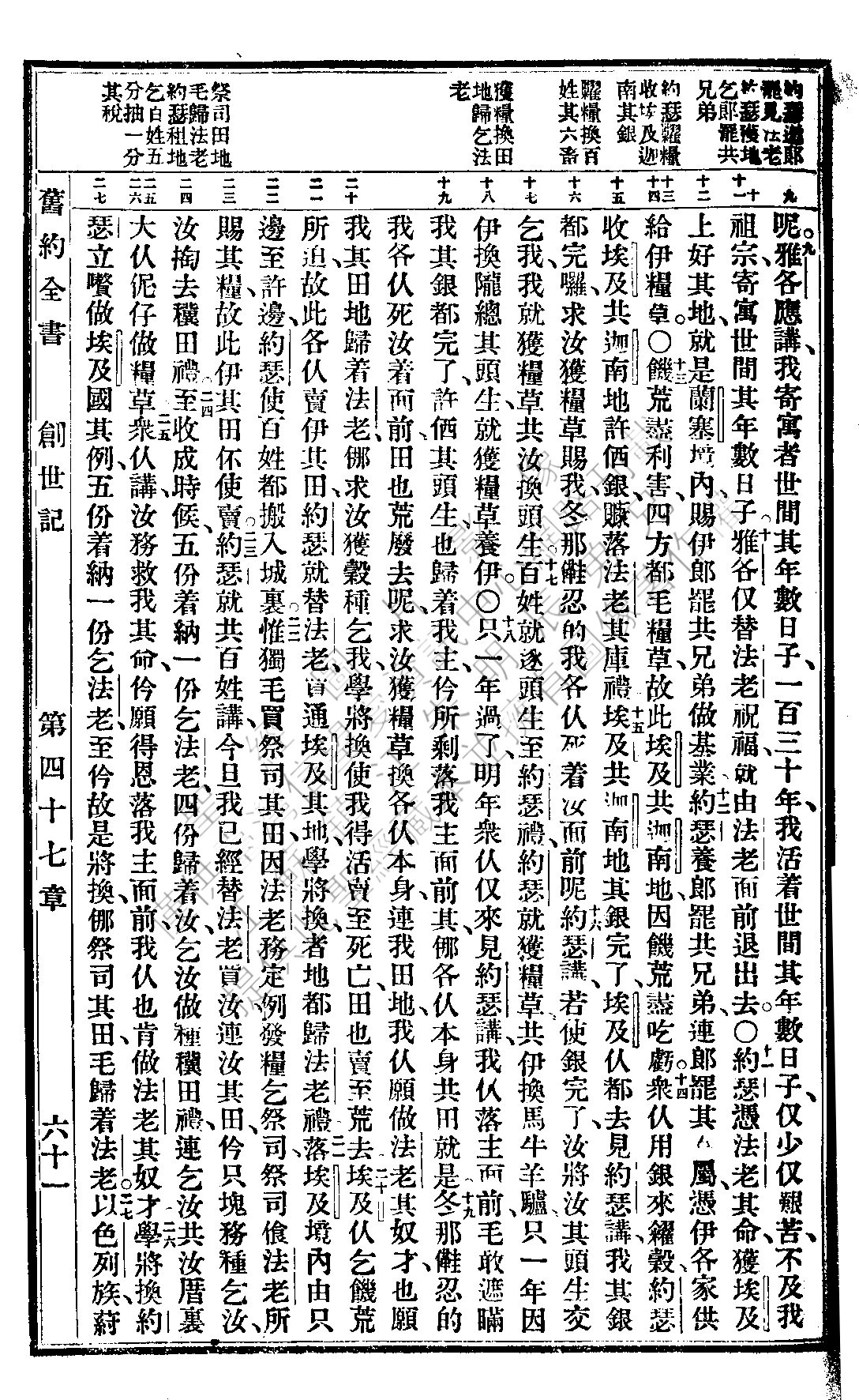 1937年福州土腔聖經 創世記 47 章 9 節到 47 章 27 節
