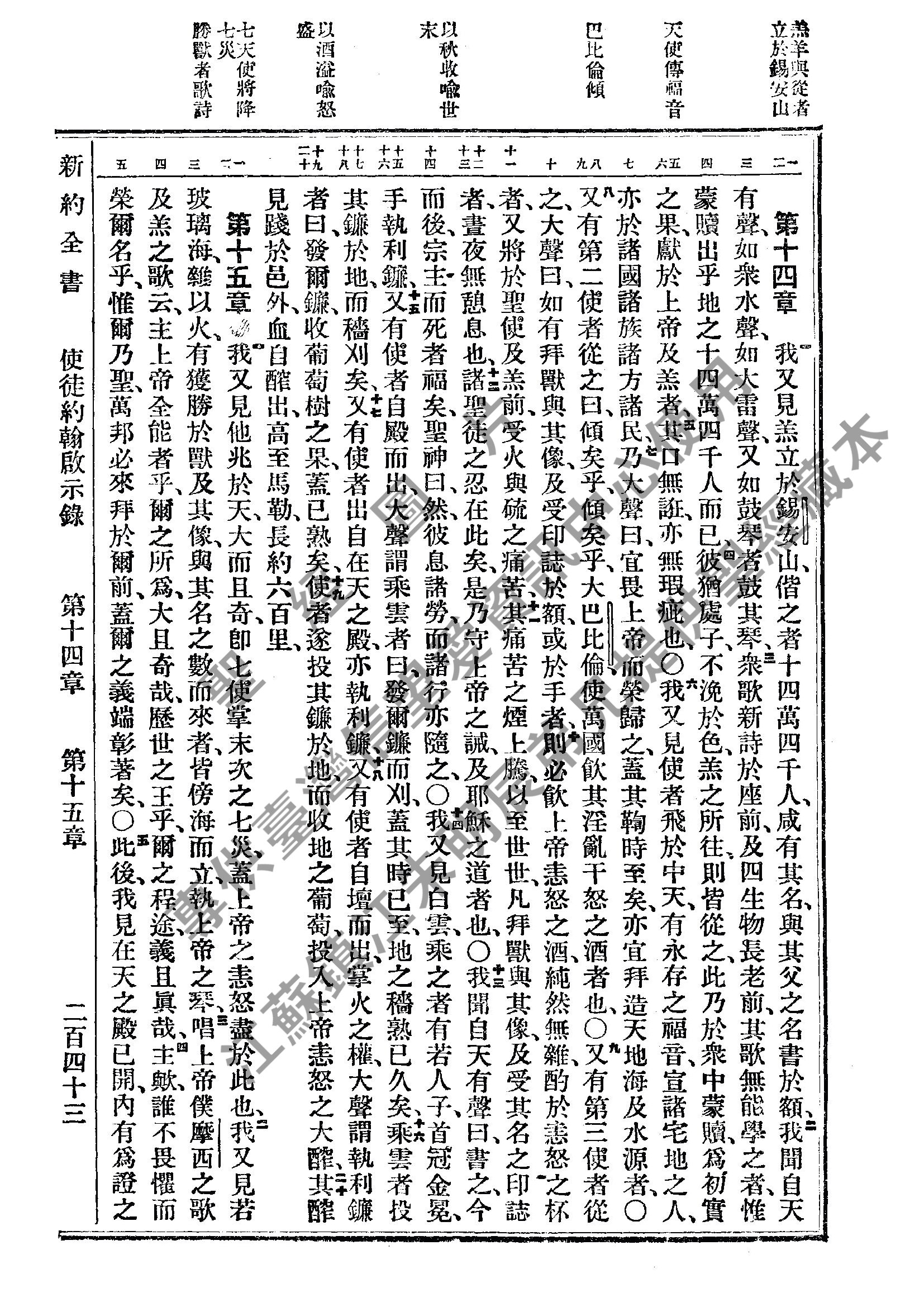 1934年新舊約全書(文理和合本) 啟示錄 14 章 到 15 章