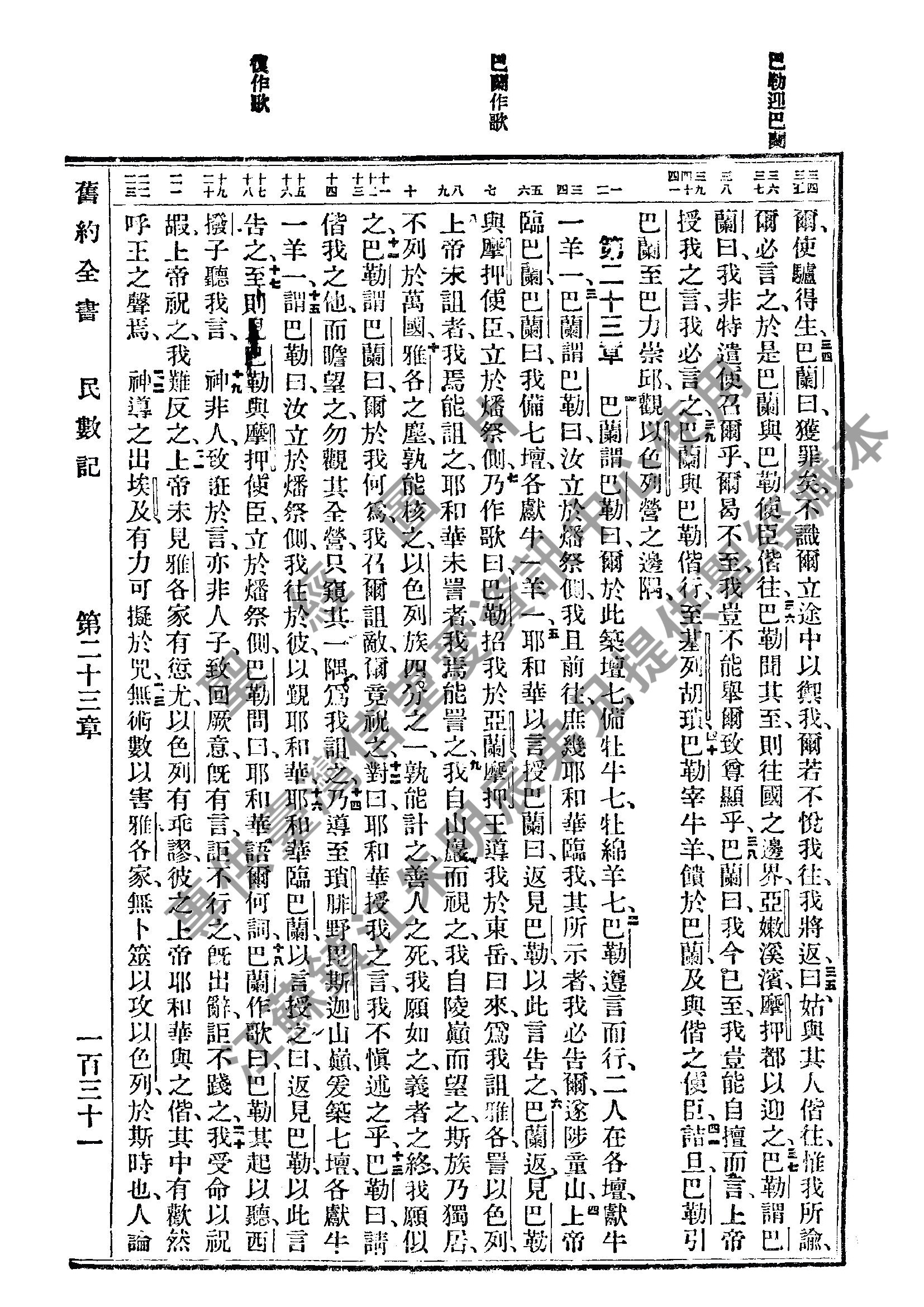 1934年新舊約全書(文理和合本) 民數記 22 章 到 23 章